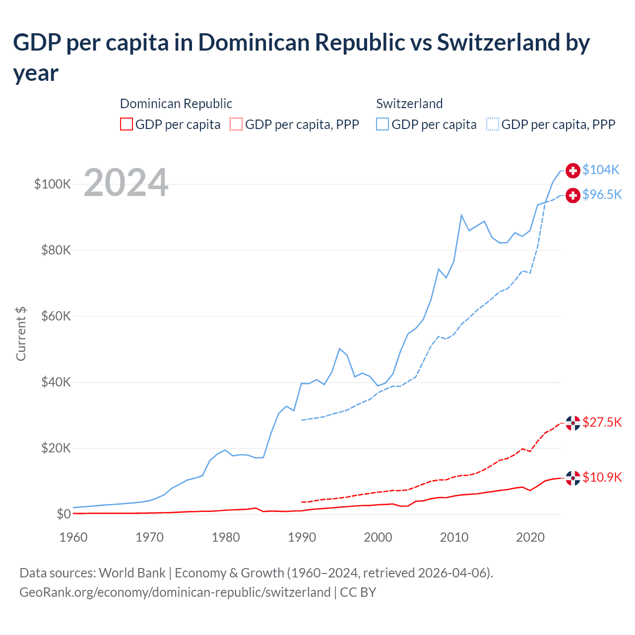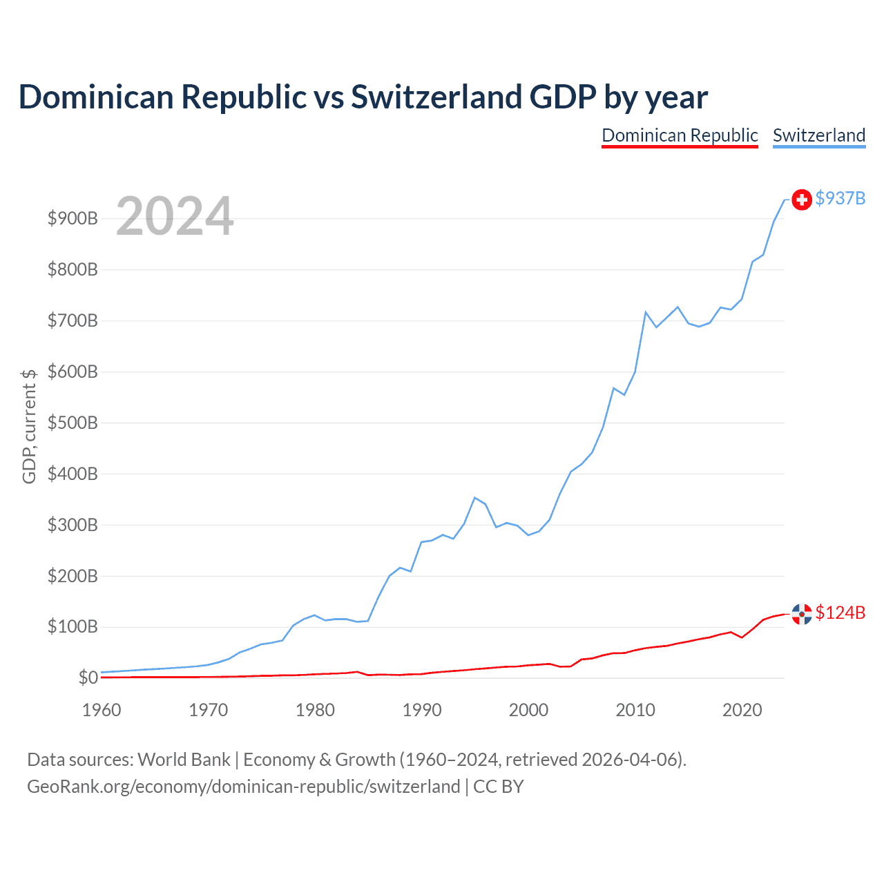 Dominican Republic vs Switzerland GDP by year