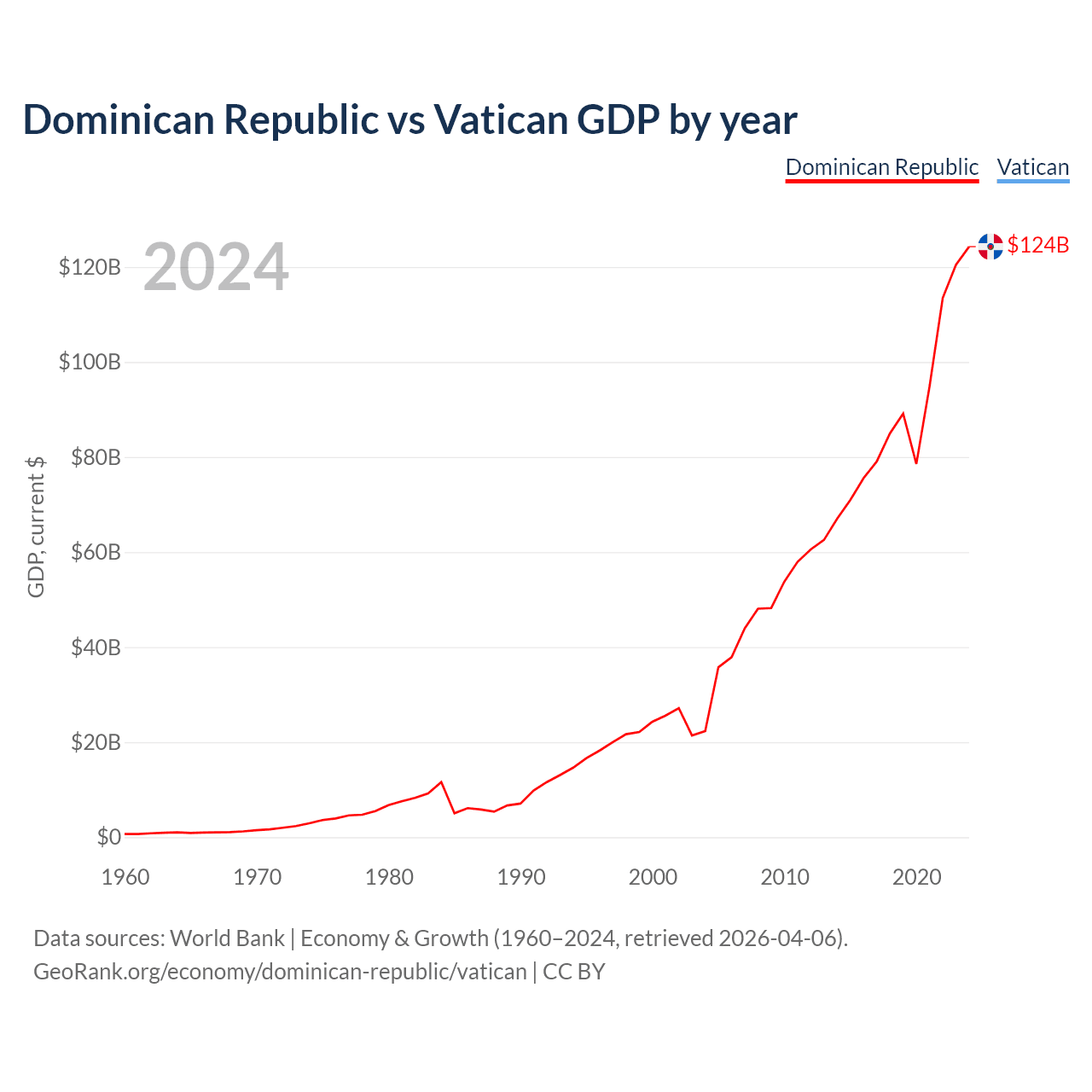 Dominican Republic vs Vatican GDP by year