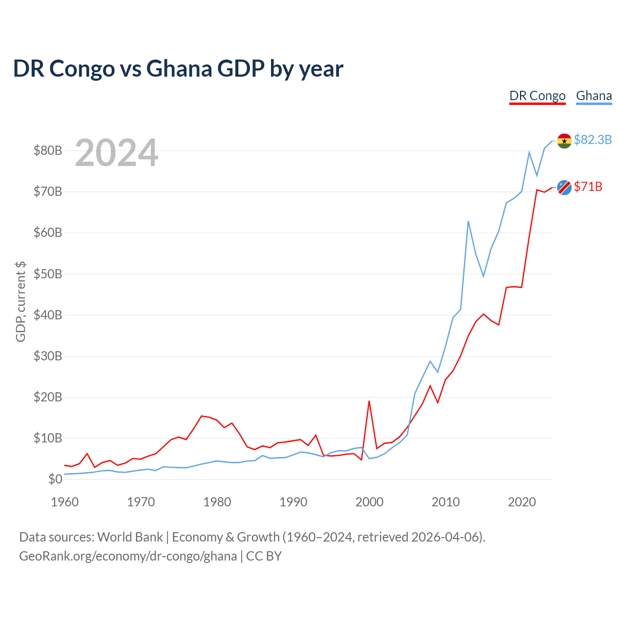 DR Congo vs Ghana GDP by year