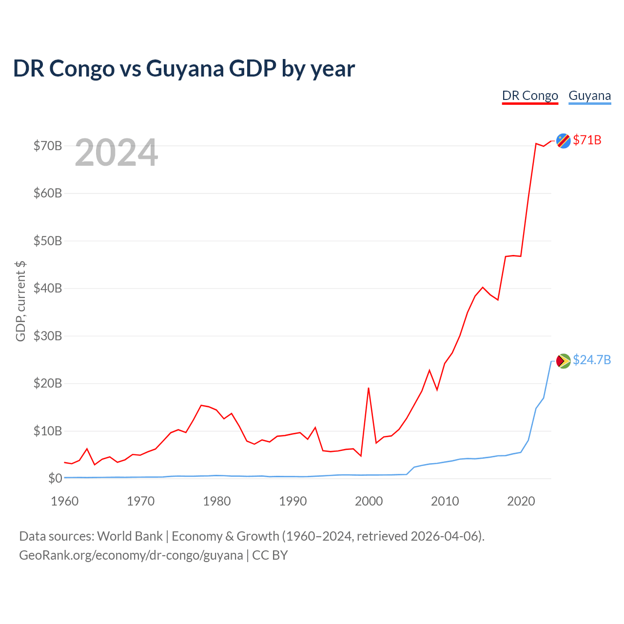 DR Congo vs Guyana GDP by year
