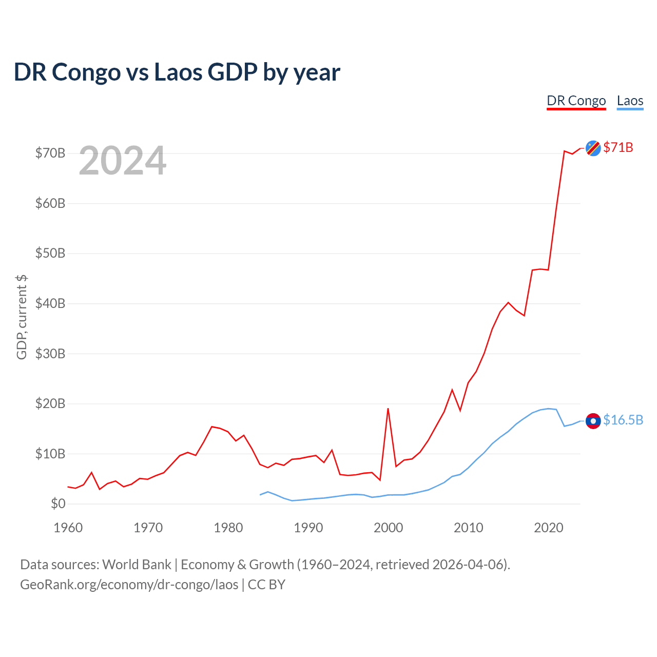 DR Congo vs Laos GDP by year
