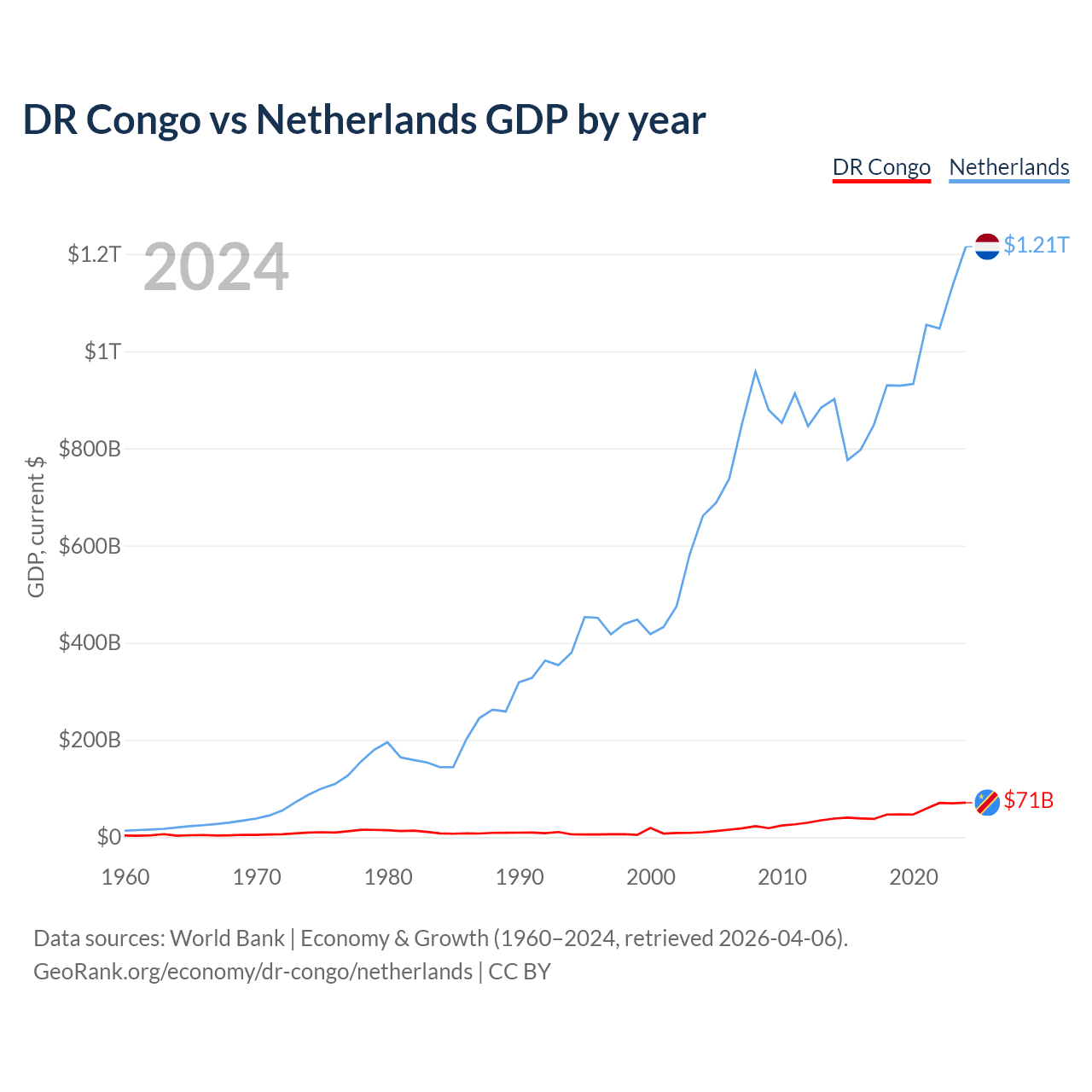 DR Congo vs Netherlands GDP by year