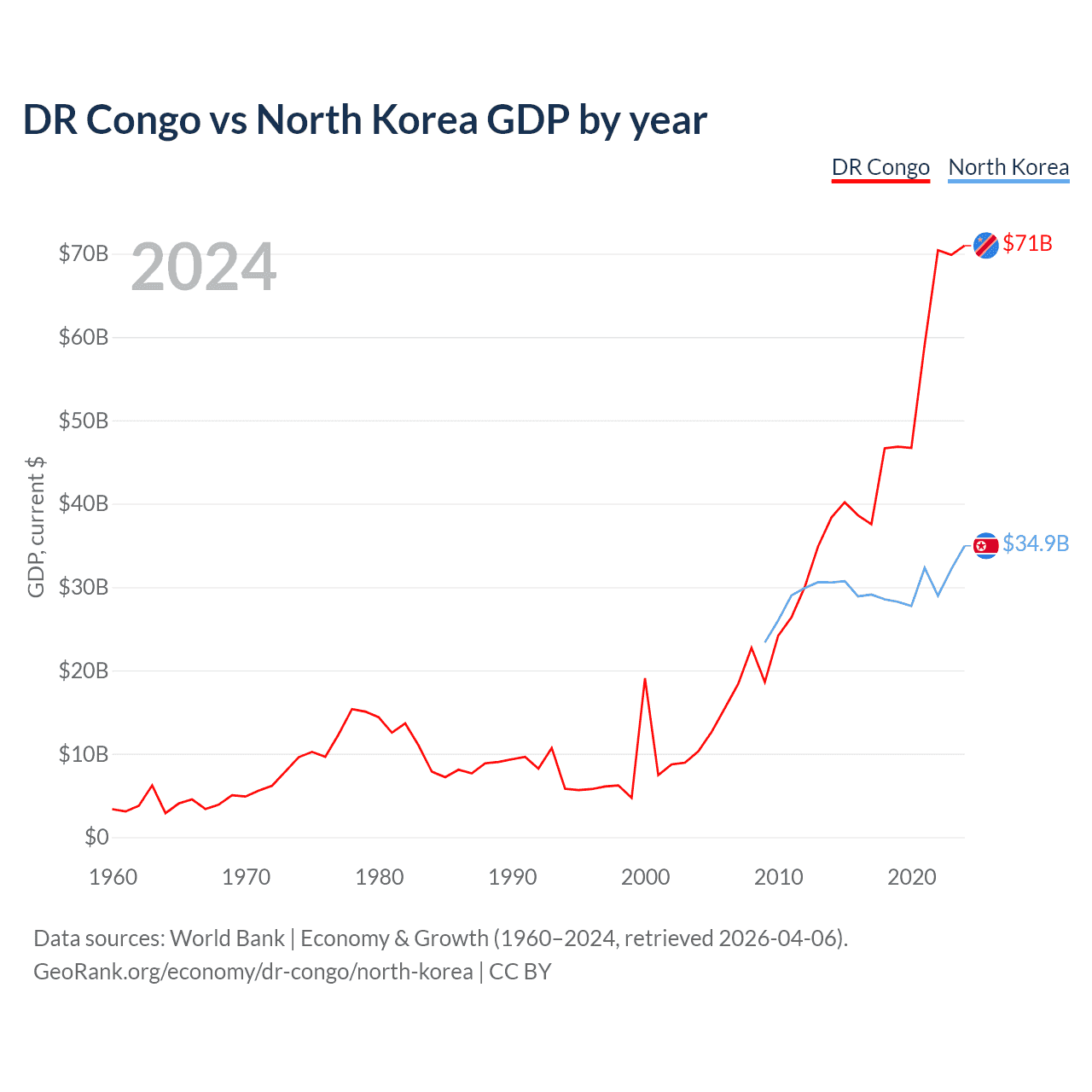 DR Congo vs North Korea GDP by year