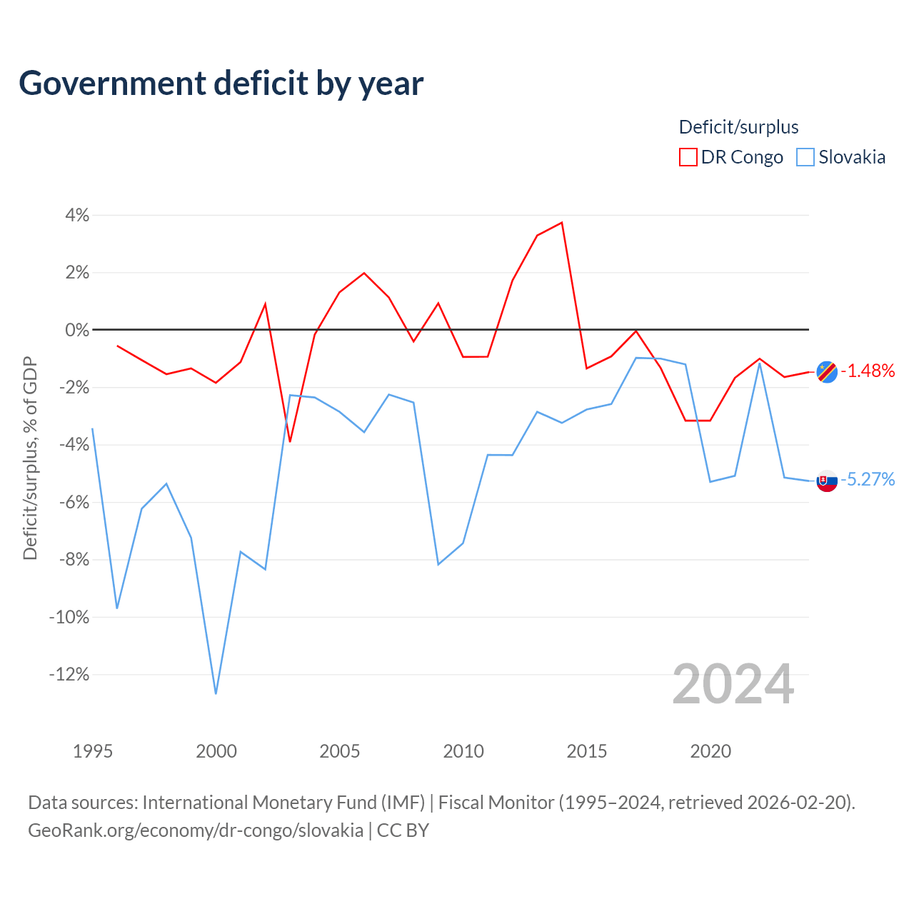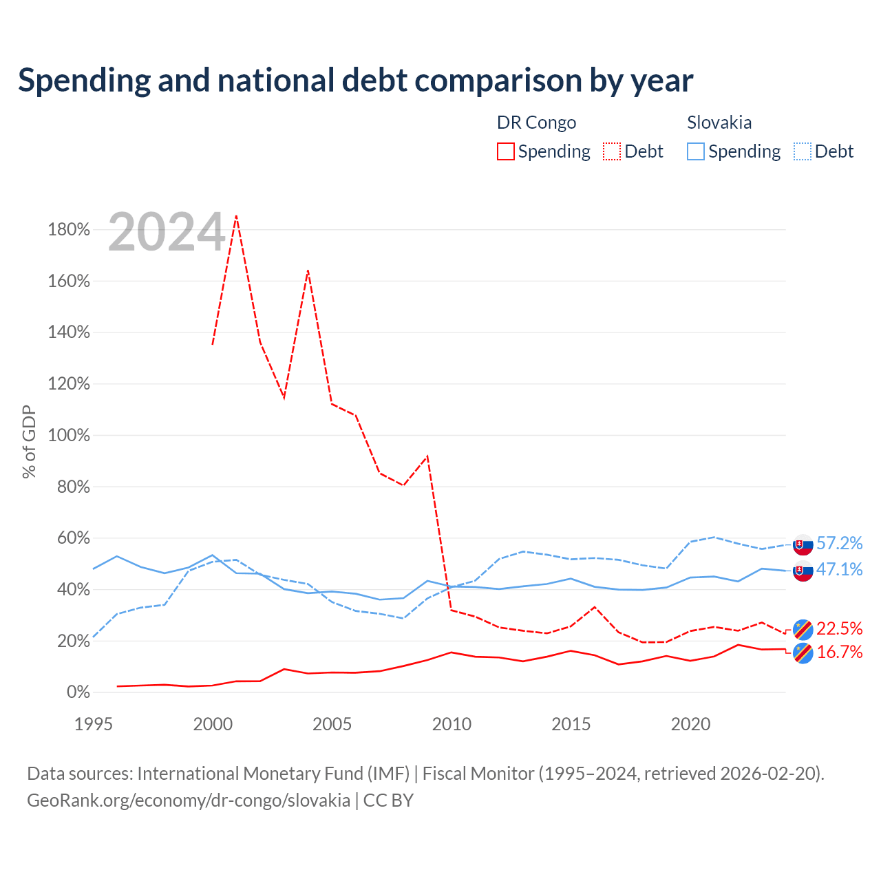 The DR Congo has $16B in government debt (22.5% of GDP), compared to $80.7B (57.2% of GDP) in Slovakia.