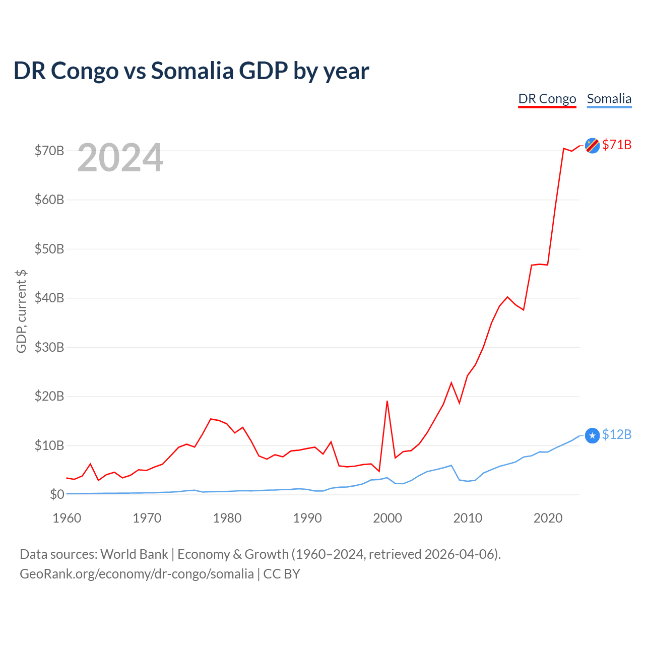 DR Congo vs Somalia GDP by year