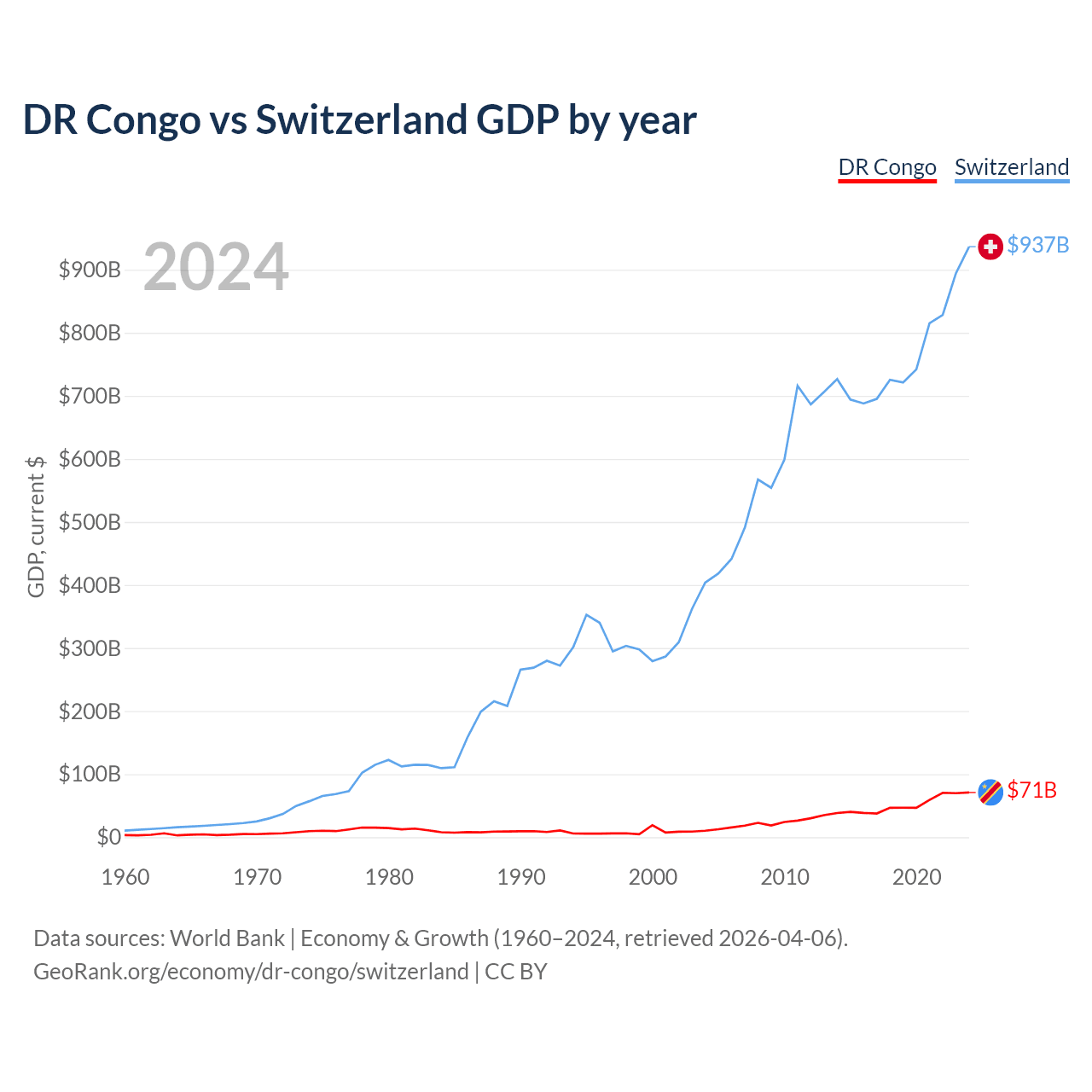 DR Congo vs Switzerland GDP by year