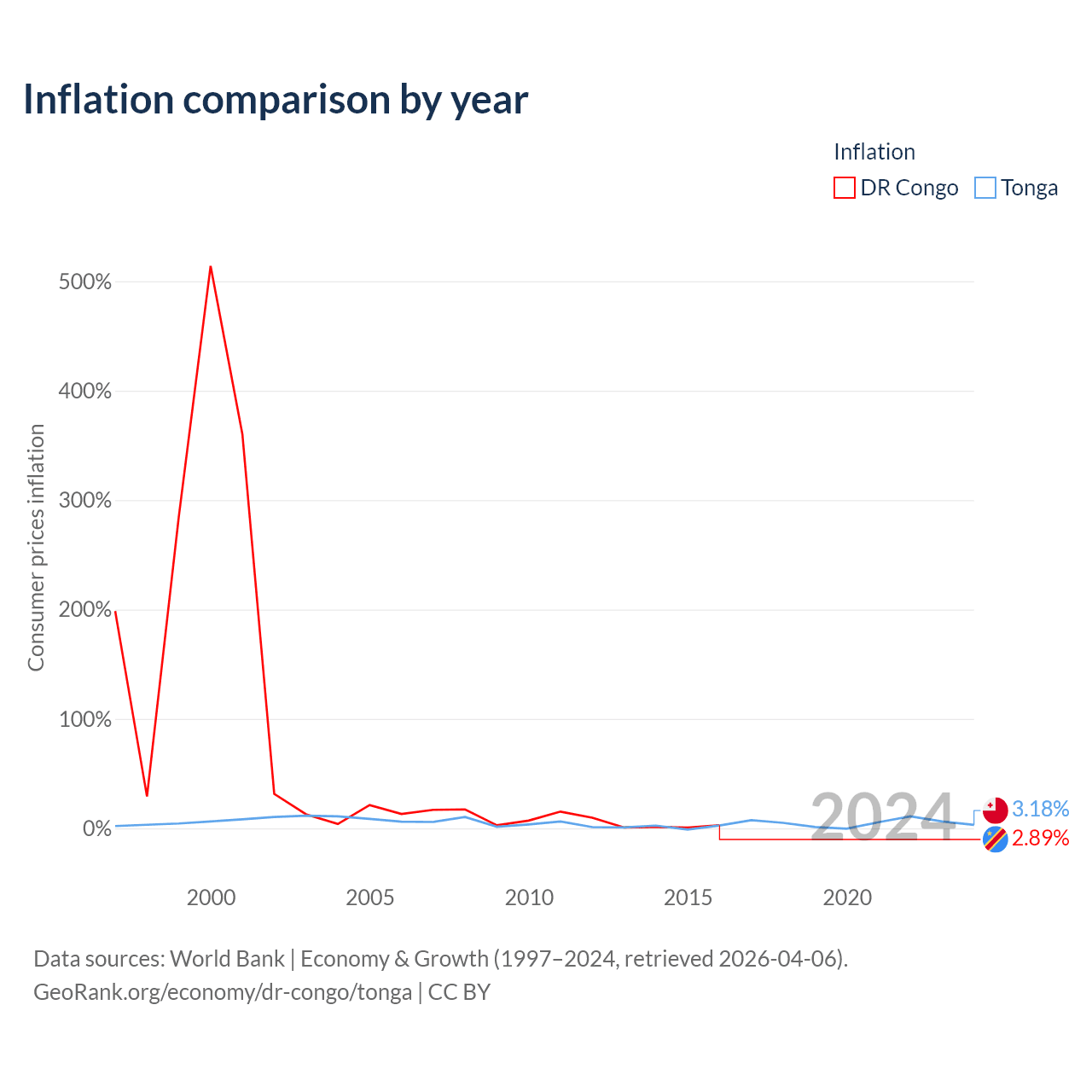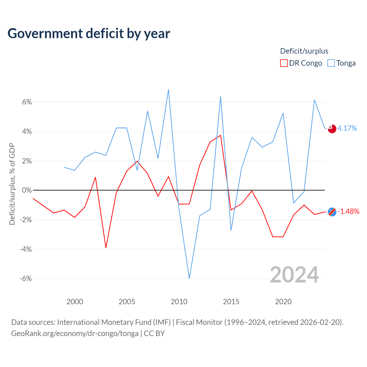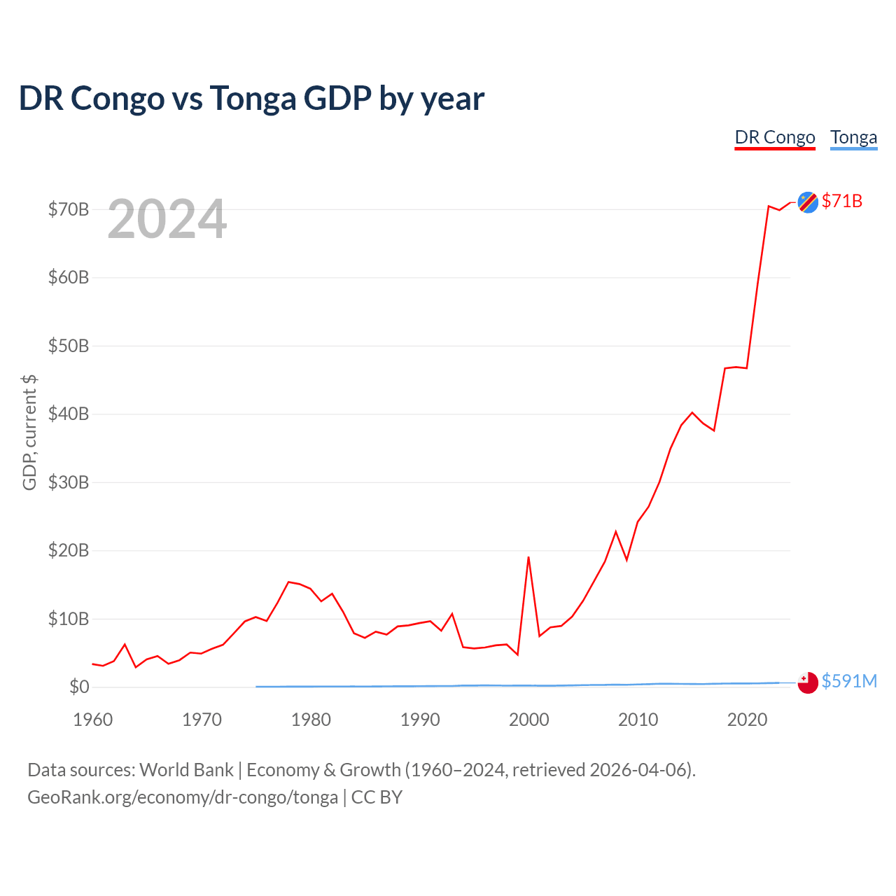 DR Congo vs Tonga GDP by year