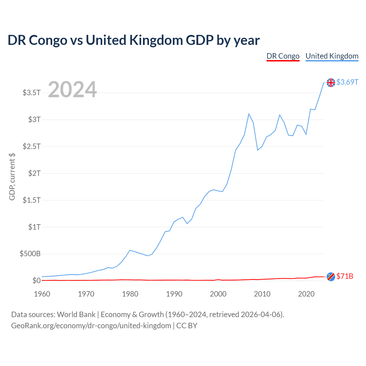 DR Congo vs United Kingdom GDP by year