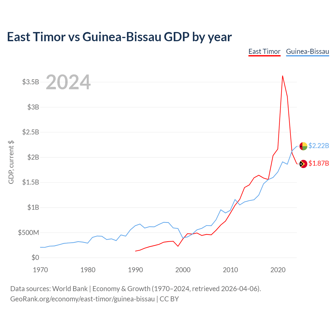East Timor vs Guinea-Bissau GDP by year