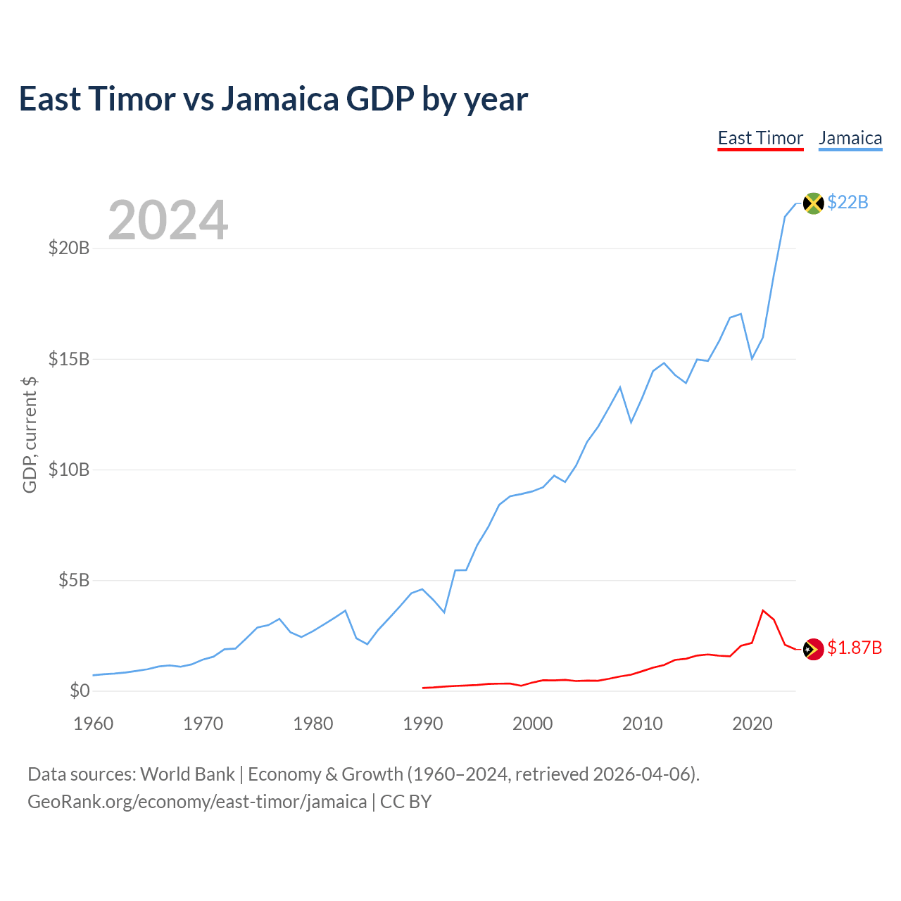East Timor vs Jamaica GDP by year