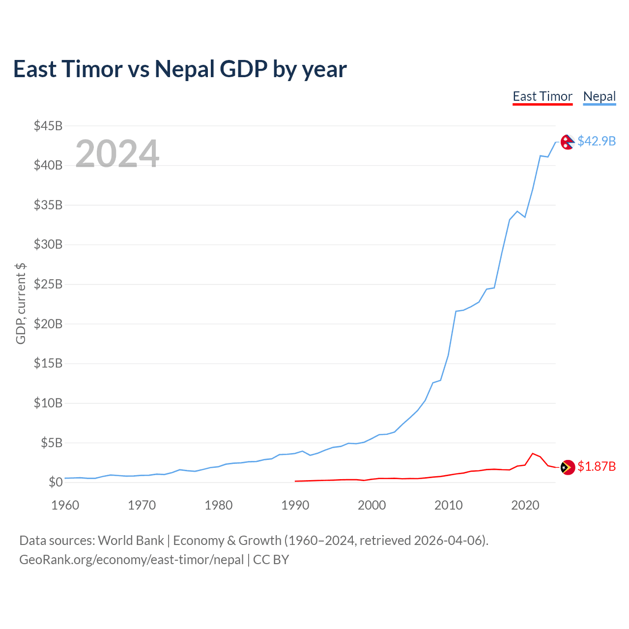 East Timor vs Nepal GDP by year