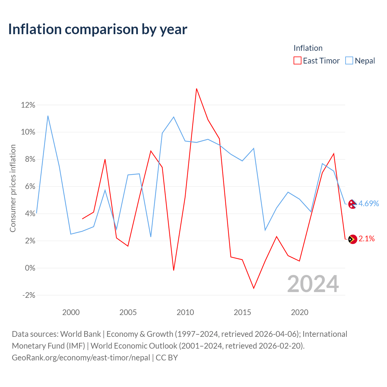 Data sources: World Bank | Economy & Growth (1960–2024, retrieved 2026-04-06).