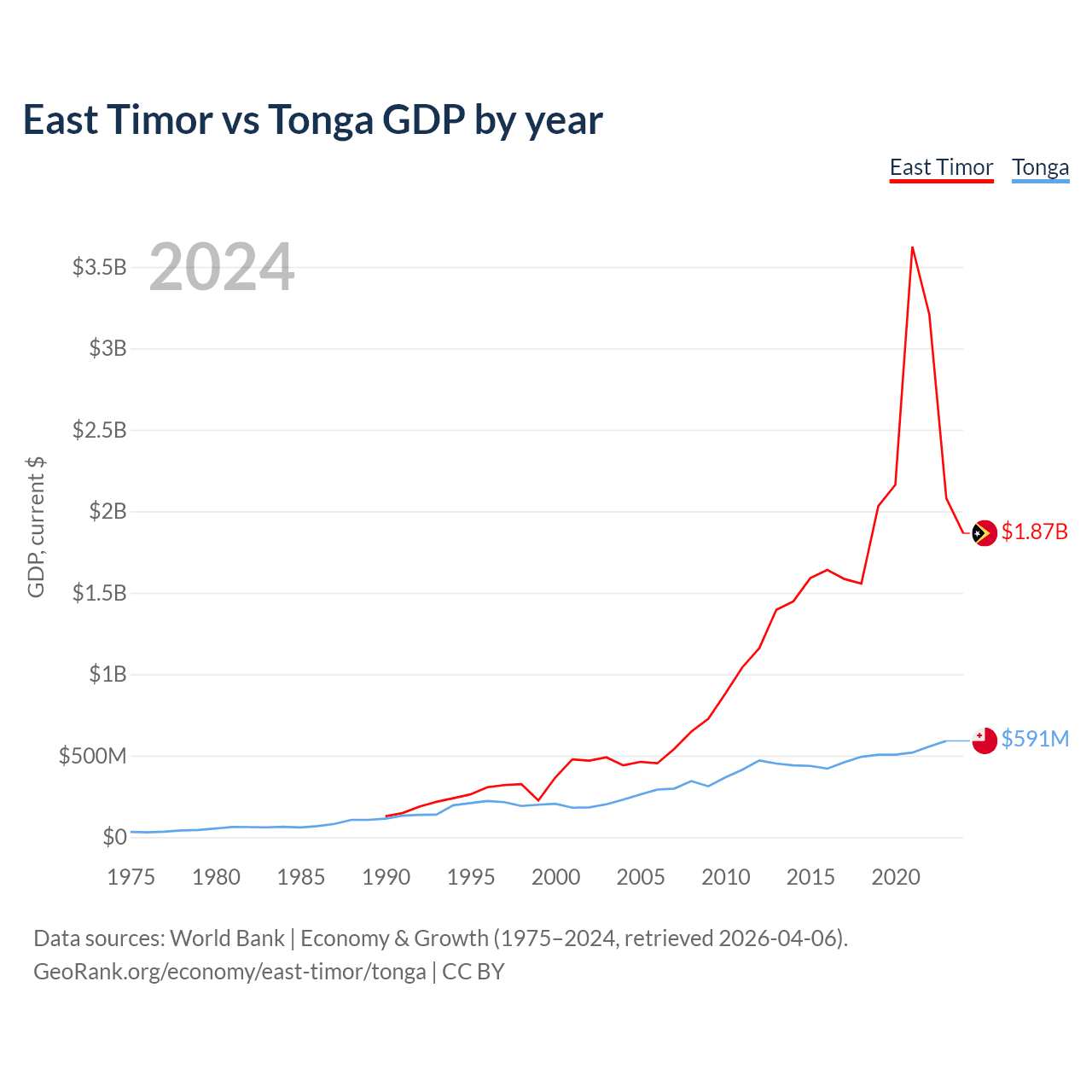 East Timor vs Tonga GDP by year
