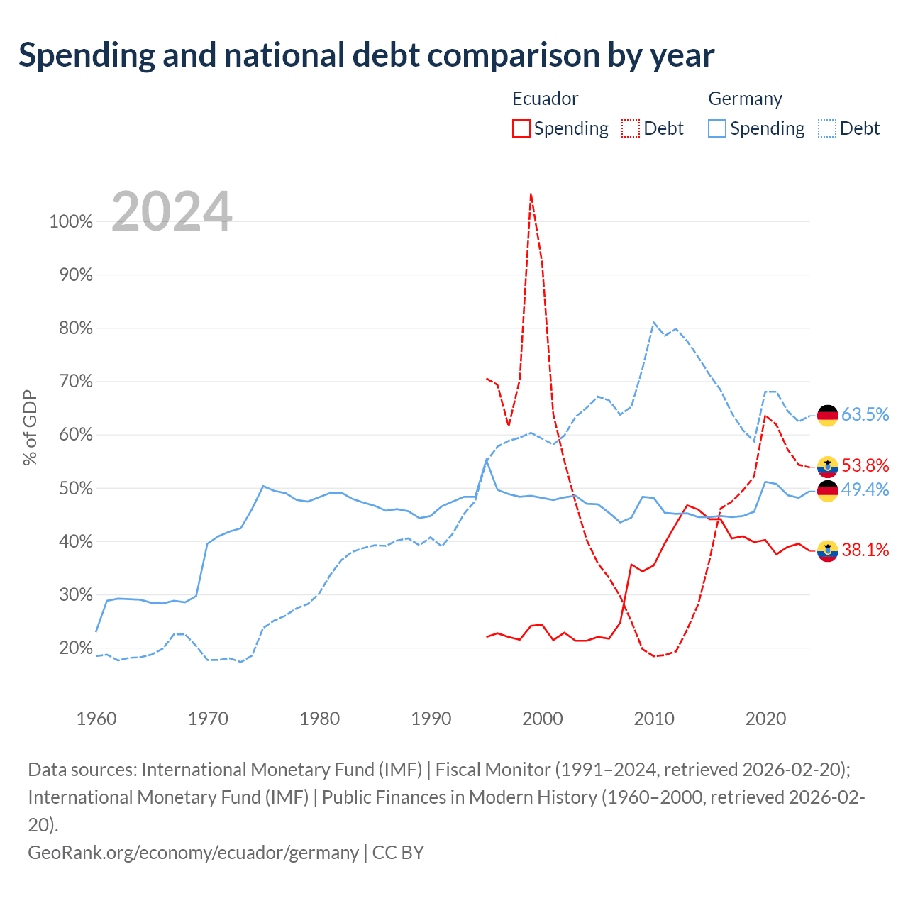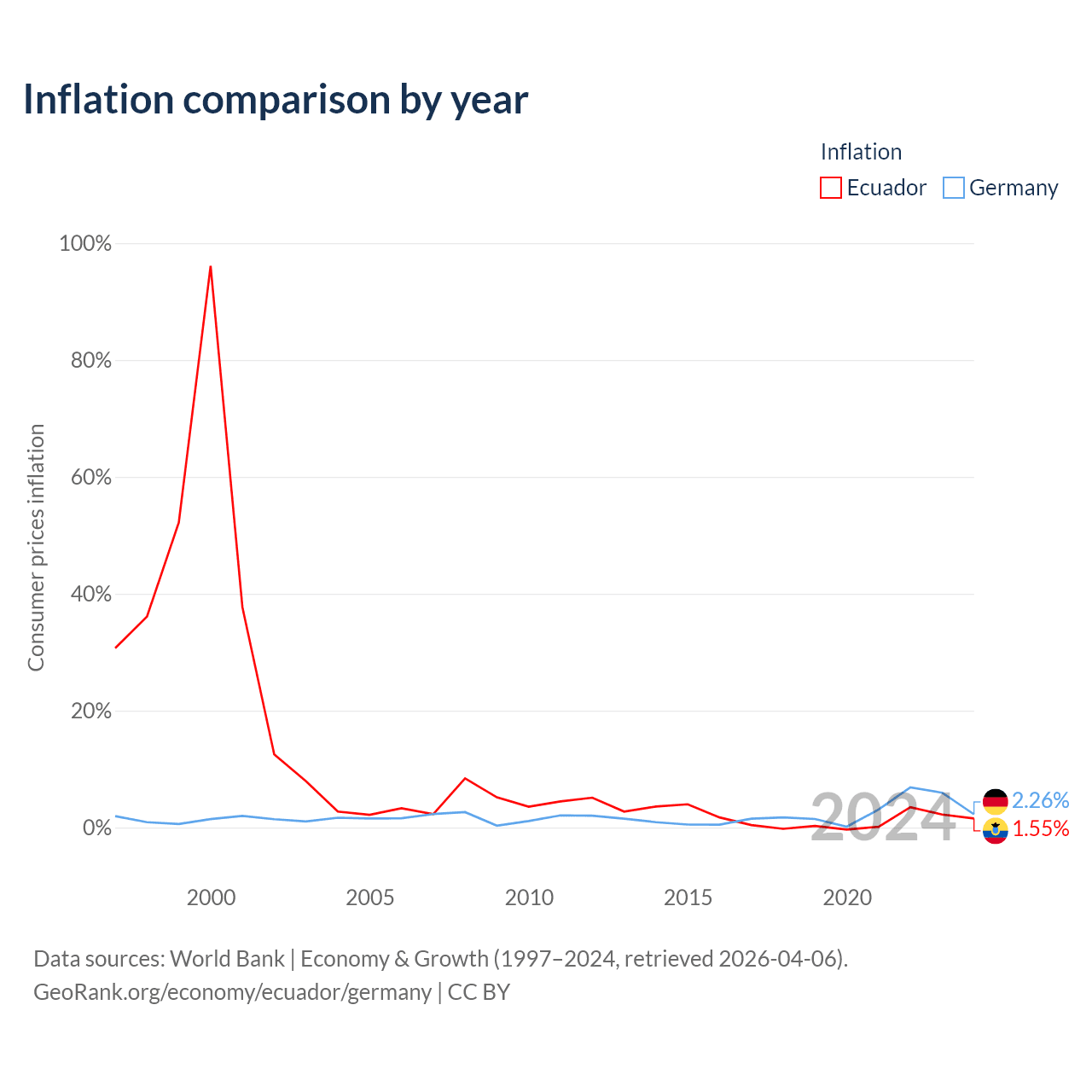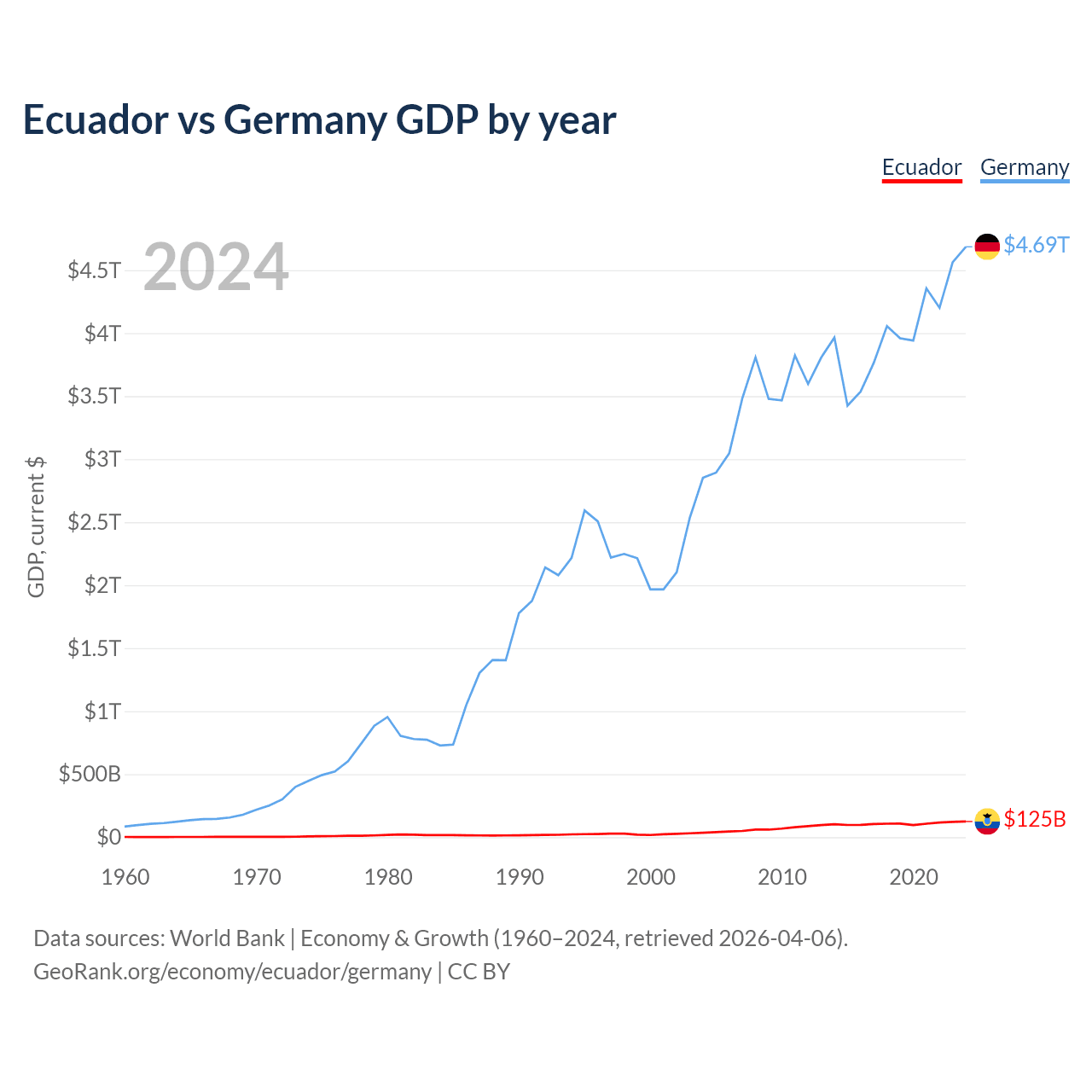 Ecuador vs Germany GDP by year
