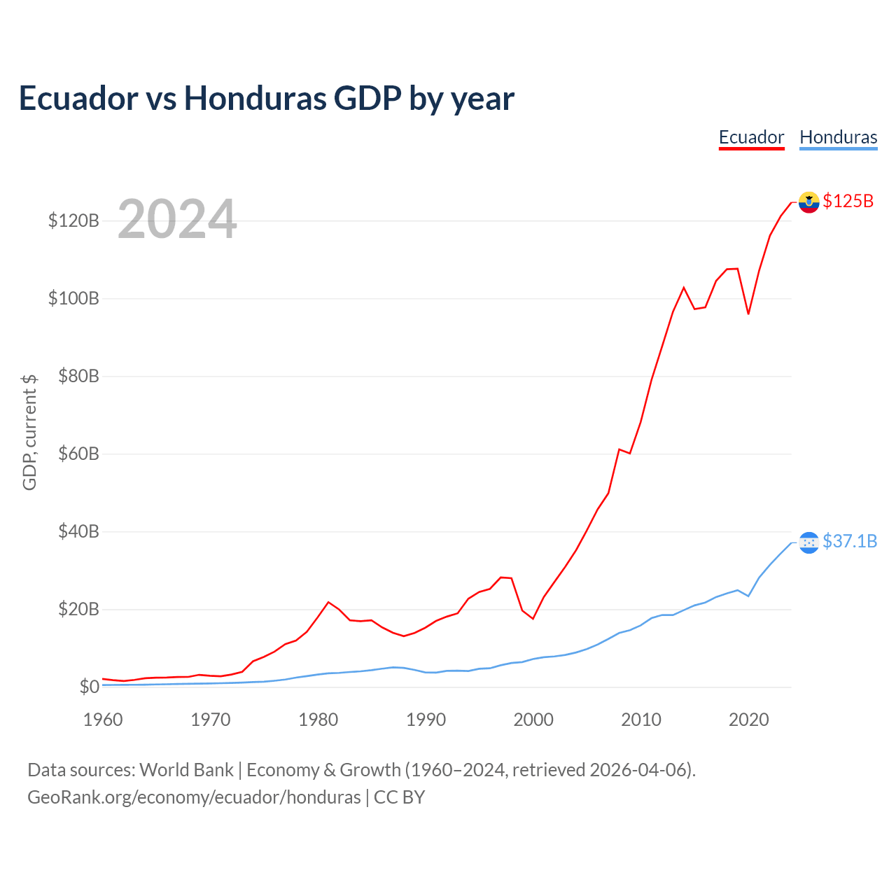 Ecuador vs Honduras GDP by year