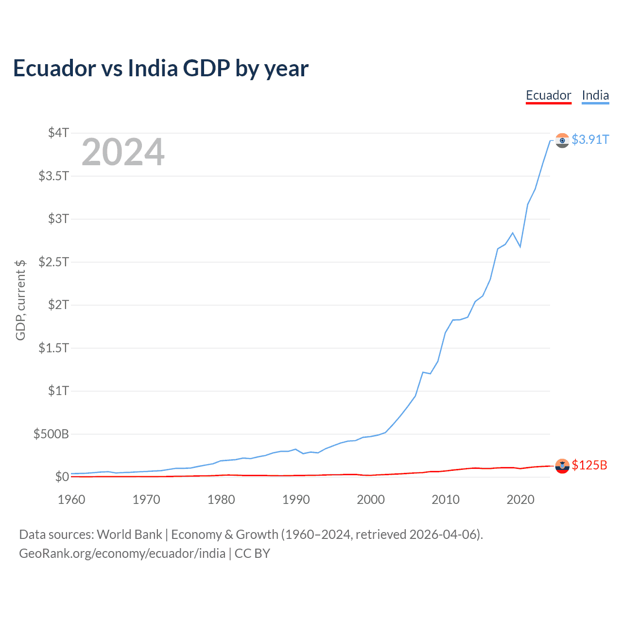 Ecuador vs India GDP by year