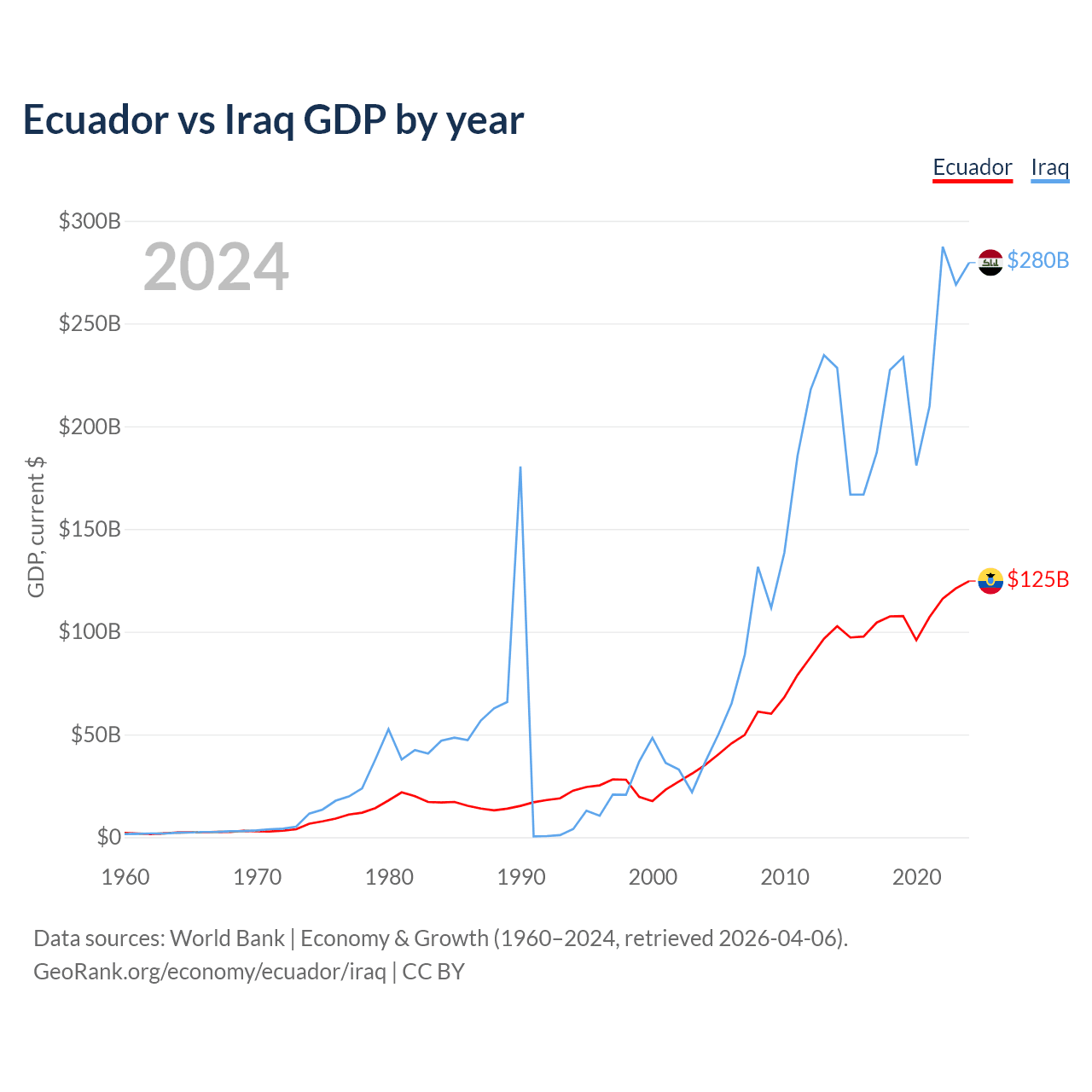 Ecuador vs Iraq GDP by year