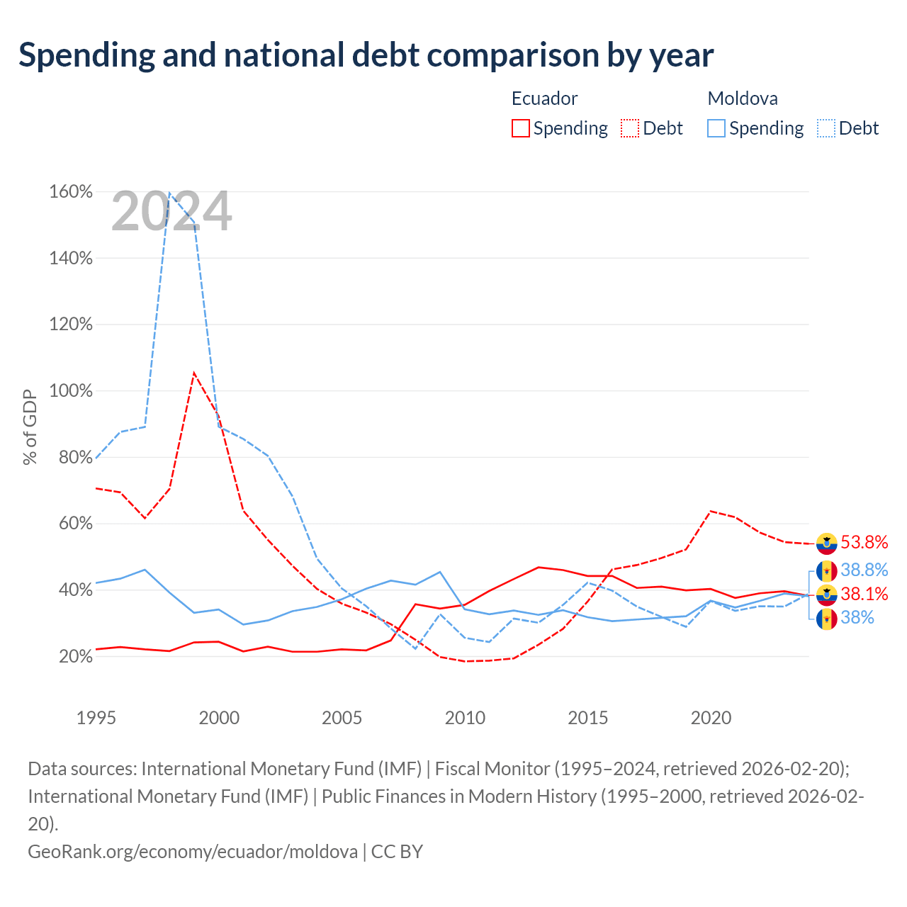 Ecuador has $67B in government debt (53.8% of GDP), compared to $7.06B (38.8% of GDP) in Moldova.