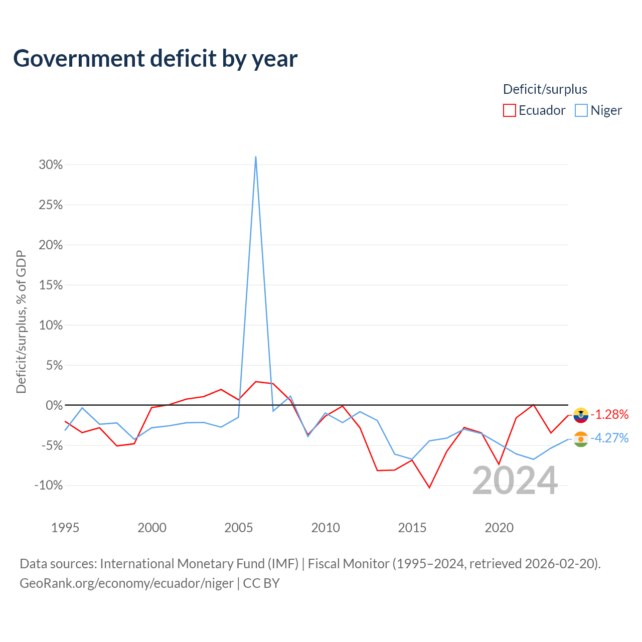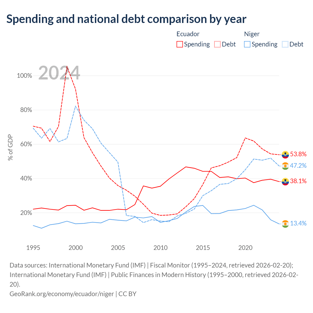 Ecuador has $67B in government debt (53.8% of GDP), compared to $9.39B (47.2% of GDP) in Niger.
