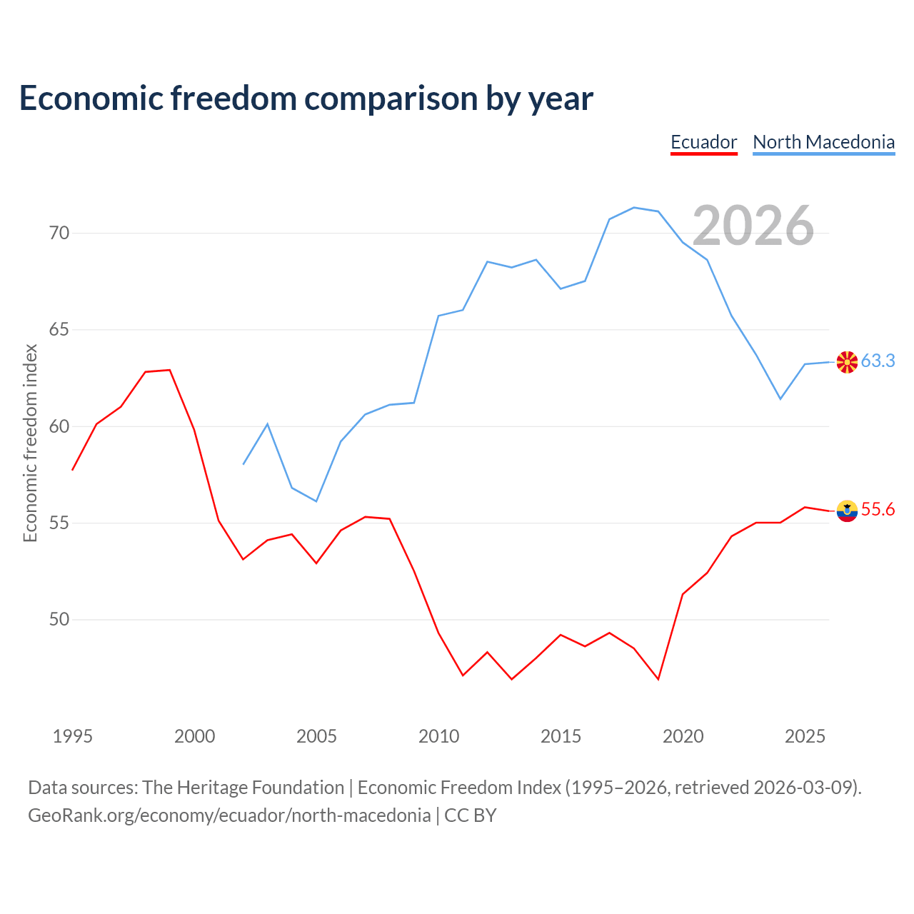 Data sources: The Heritage Foundation | Economic Freedom Index (1995–2026, retrieved 2026-03-09).