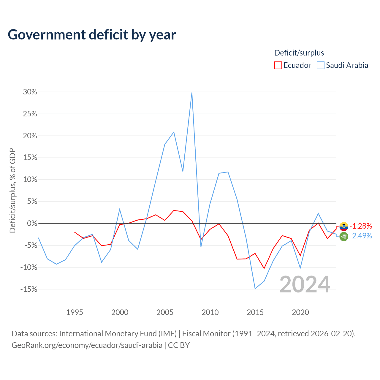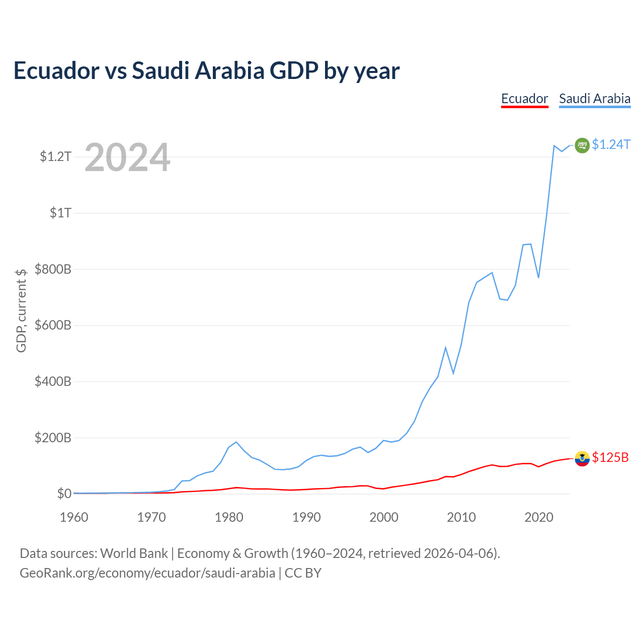 Ecuador vs Saudi Arabia GDP by year