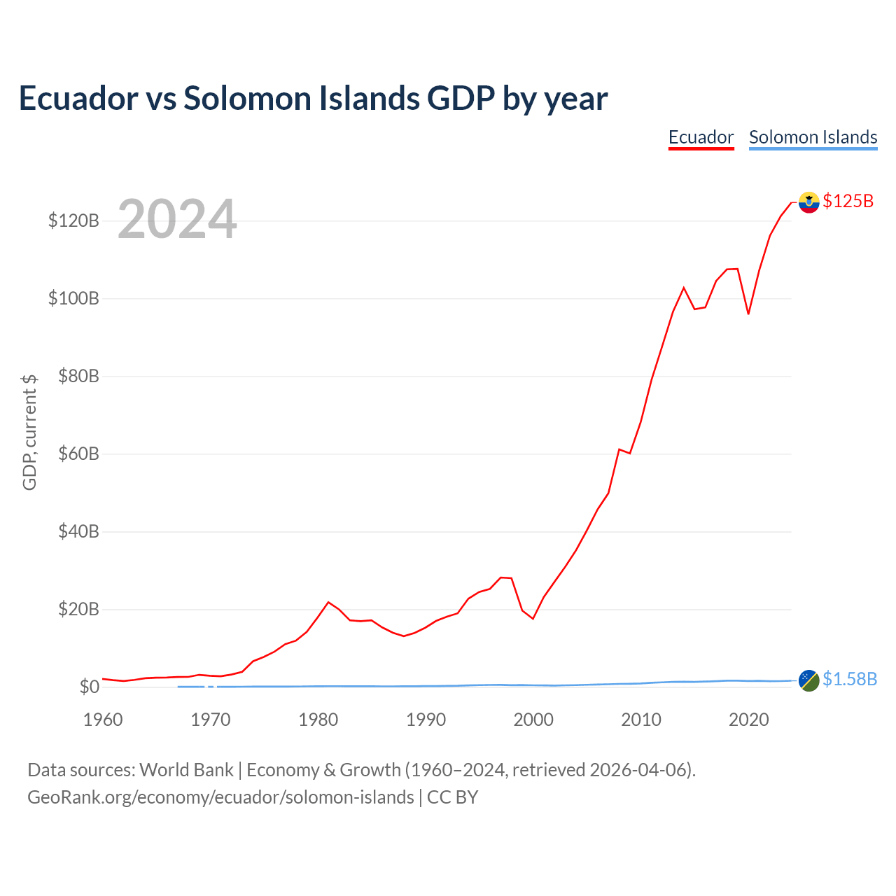 Ecuador vs Solomon Islands GDP by year