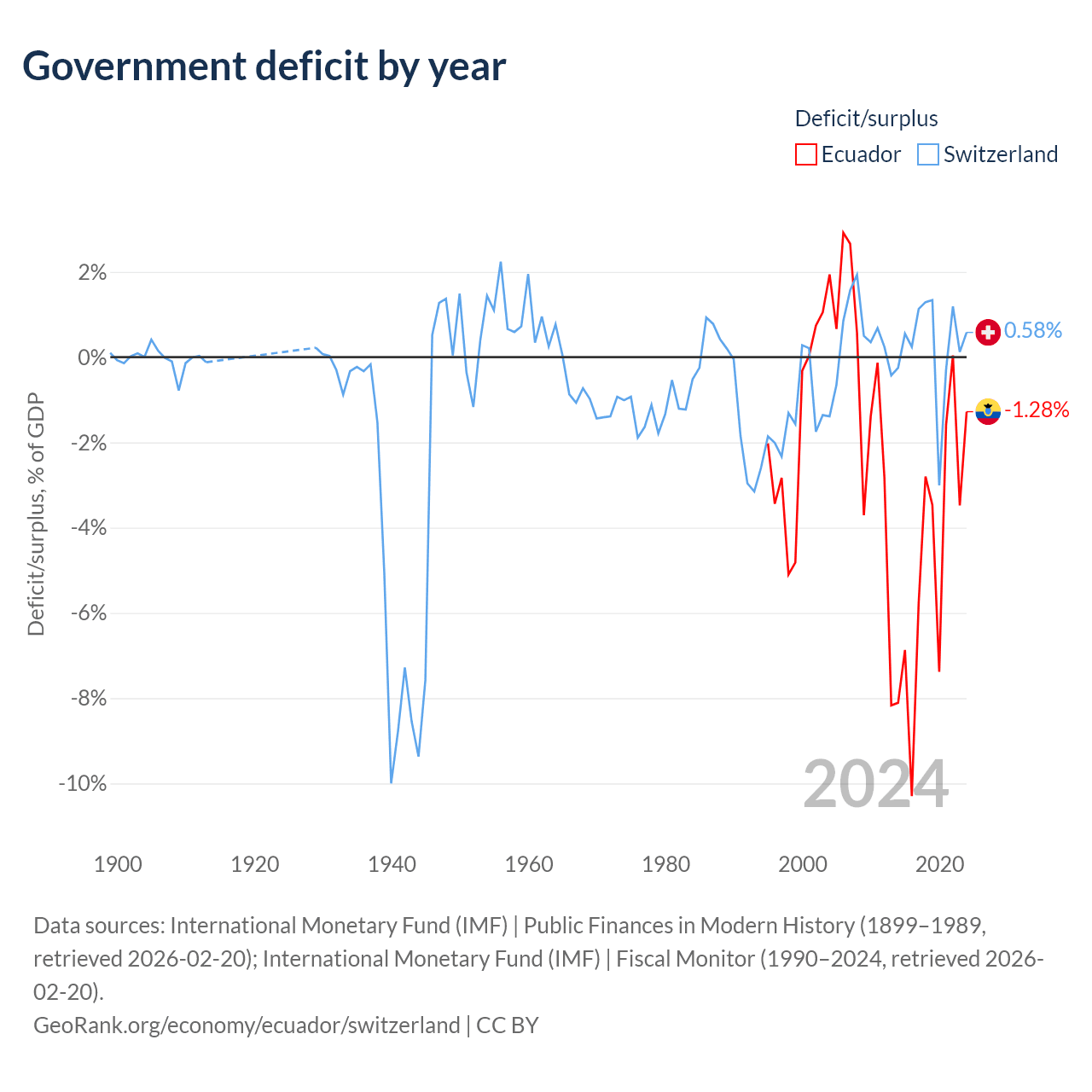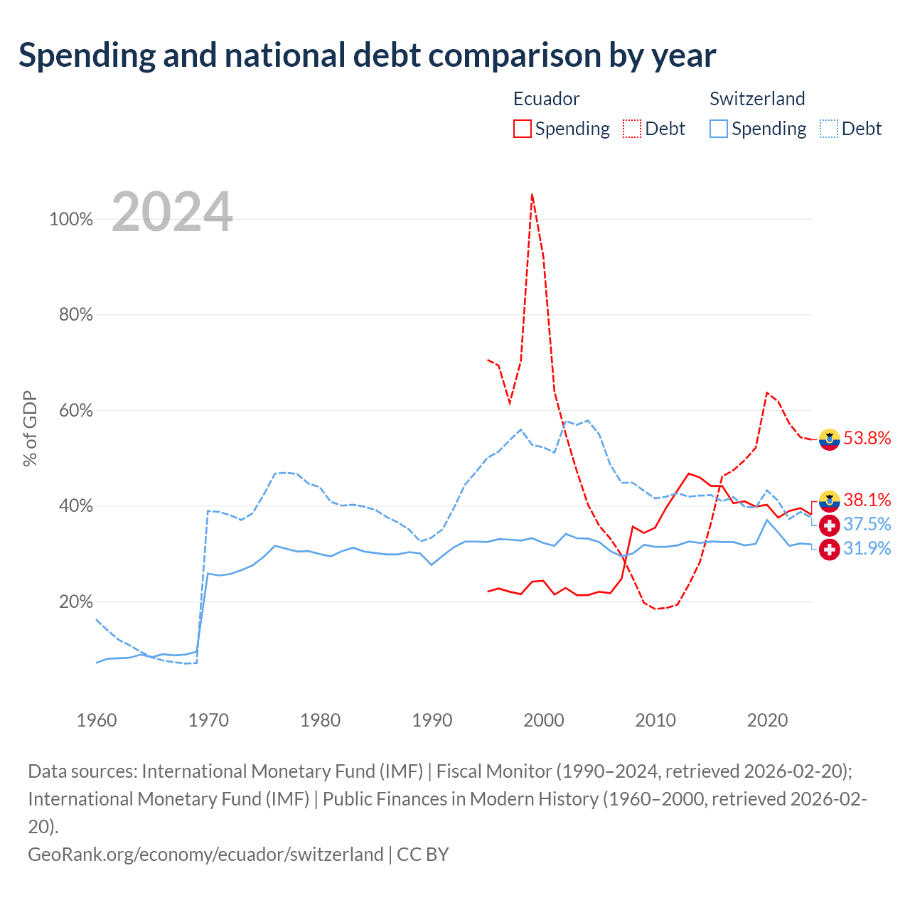 Ecuador has $67B in government debt (53.8% of GDP), compared to $351B (37.5% of GDP) in Switzerland.