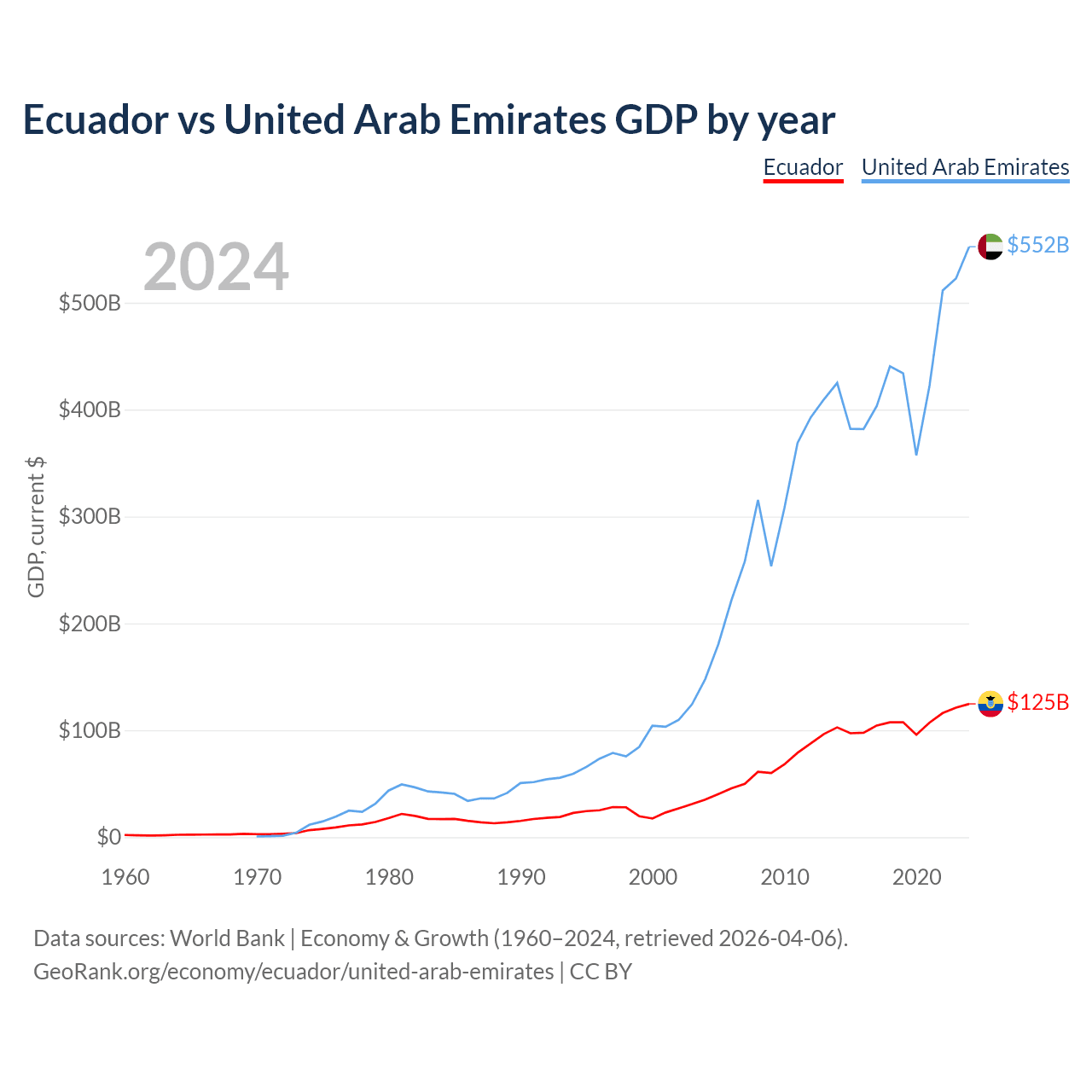 Ecuador vs United Arab Emirates GDP by year