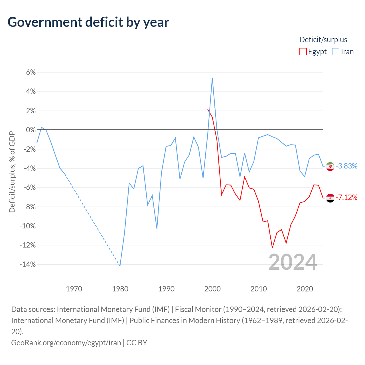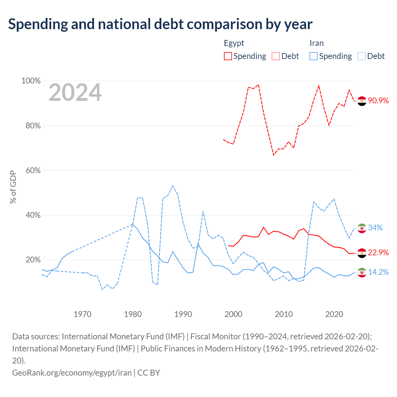 Egypt has $354B in government debt (90.9% of GDP), compared to $162B (34% of GDP) in Iran.
