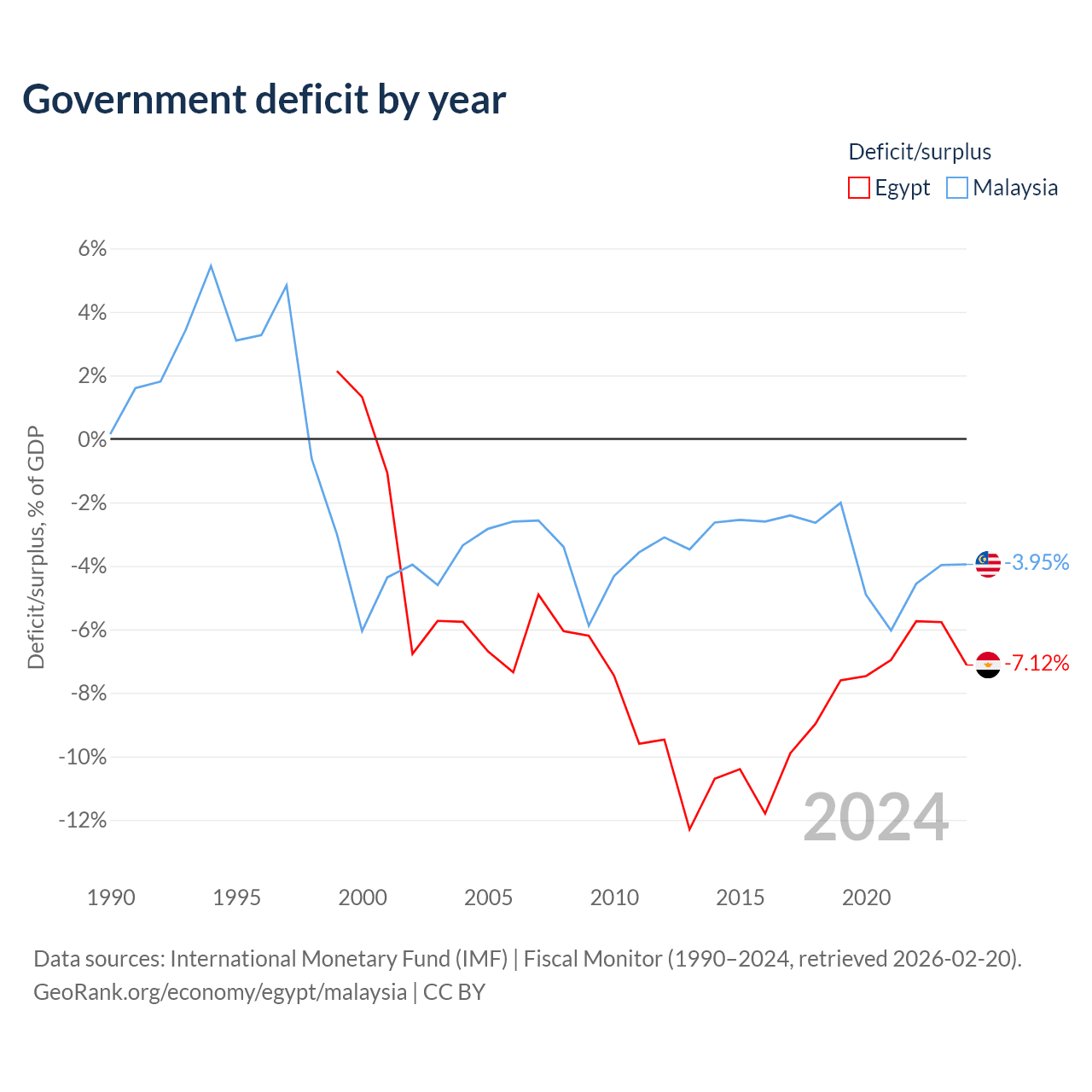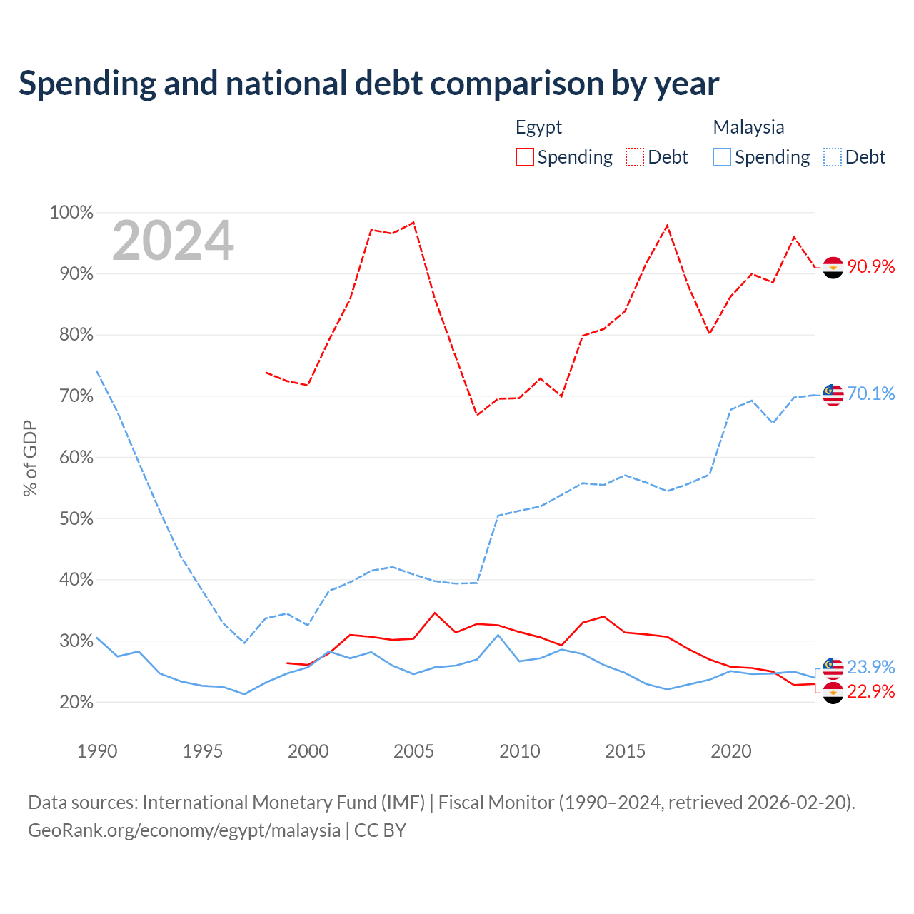 Egypt has $354B in government debt (90.9% of GDP), compared to $296B (70.1% of GDP) in Malaysia.