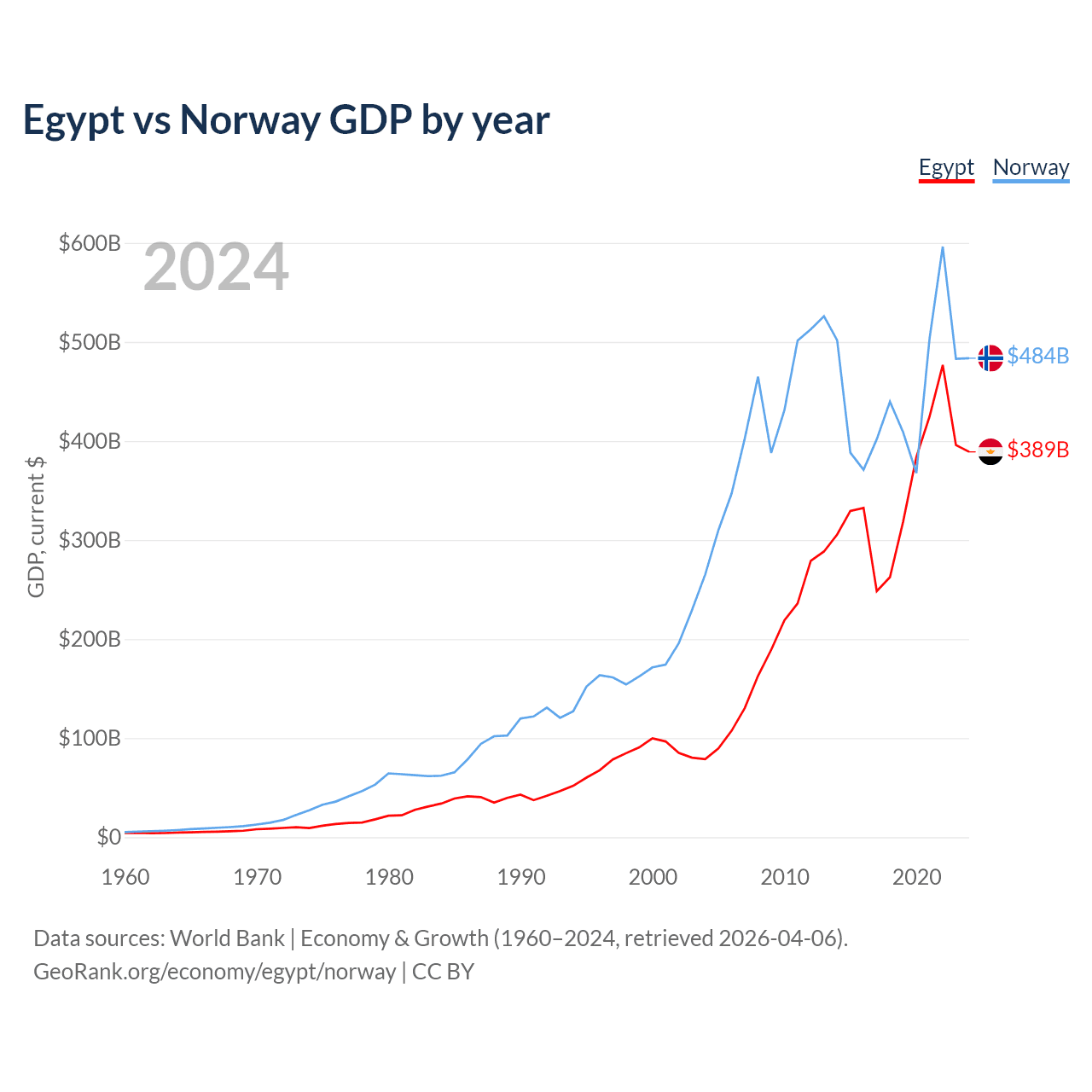 Egypt vs Norway GDP by year