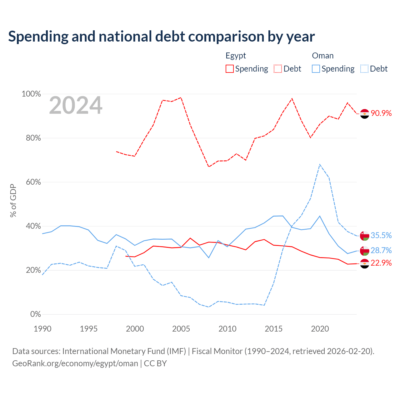 - International Monetary Fund (IMF) | Fiscal Monitor (1990–2024, retrieved 2026-02-20)