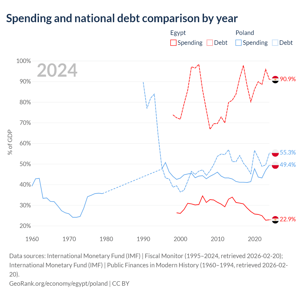 Egypt has $354B in government debt (90.9% of GDP), compared to $507B (55.3% of GDP) in Poland.