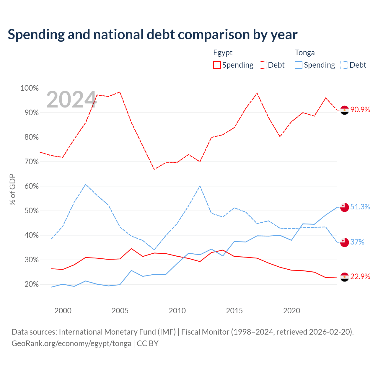 Egypt has $354B in government debt (90.9% of GDP), compared to $256M (37% of GDP) in Tonga.
