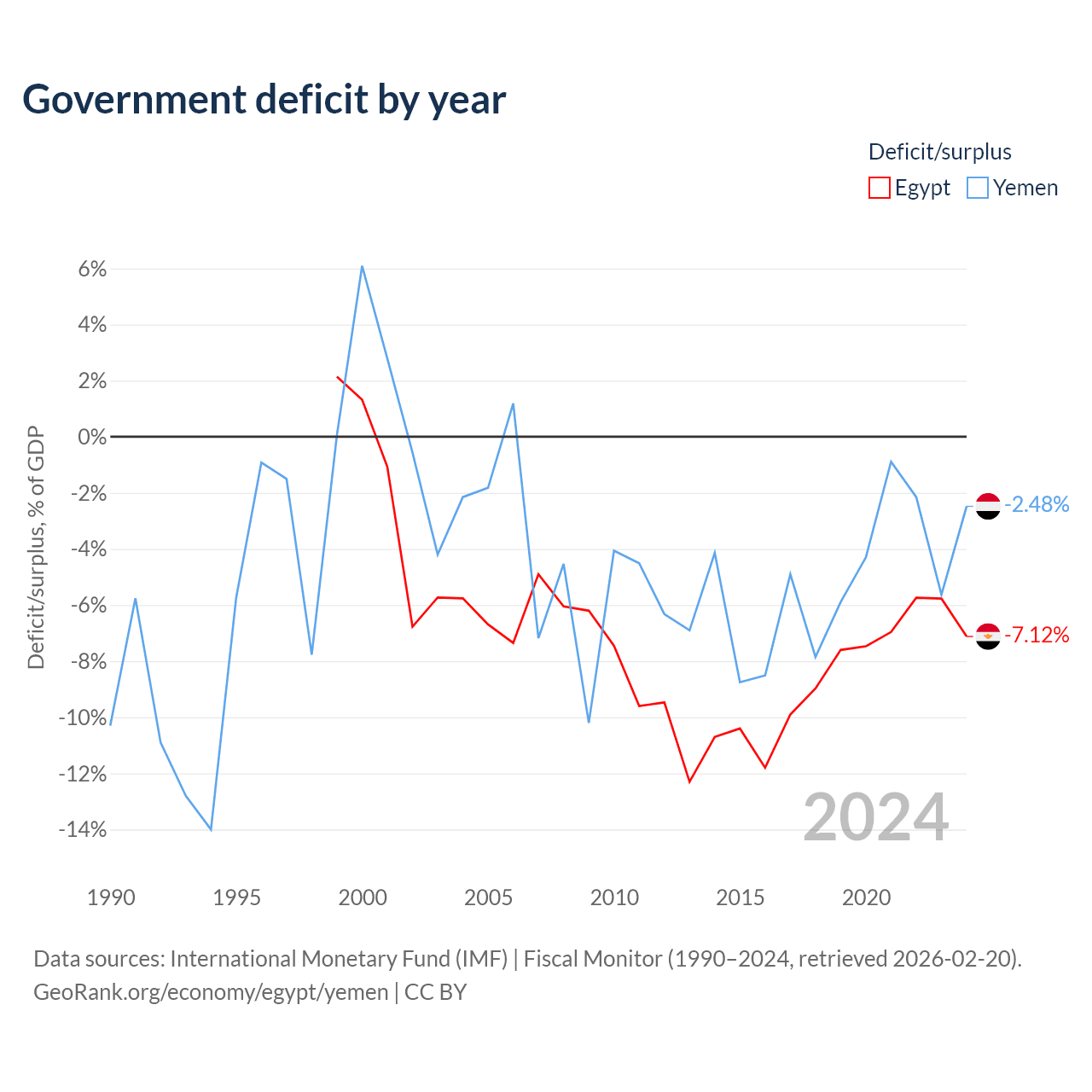 - International Monetary Fund (IMF) | Fiscal Monitor (1990–2024, retrieved 2026-02-20)