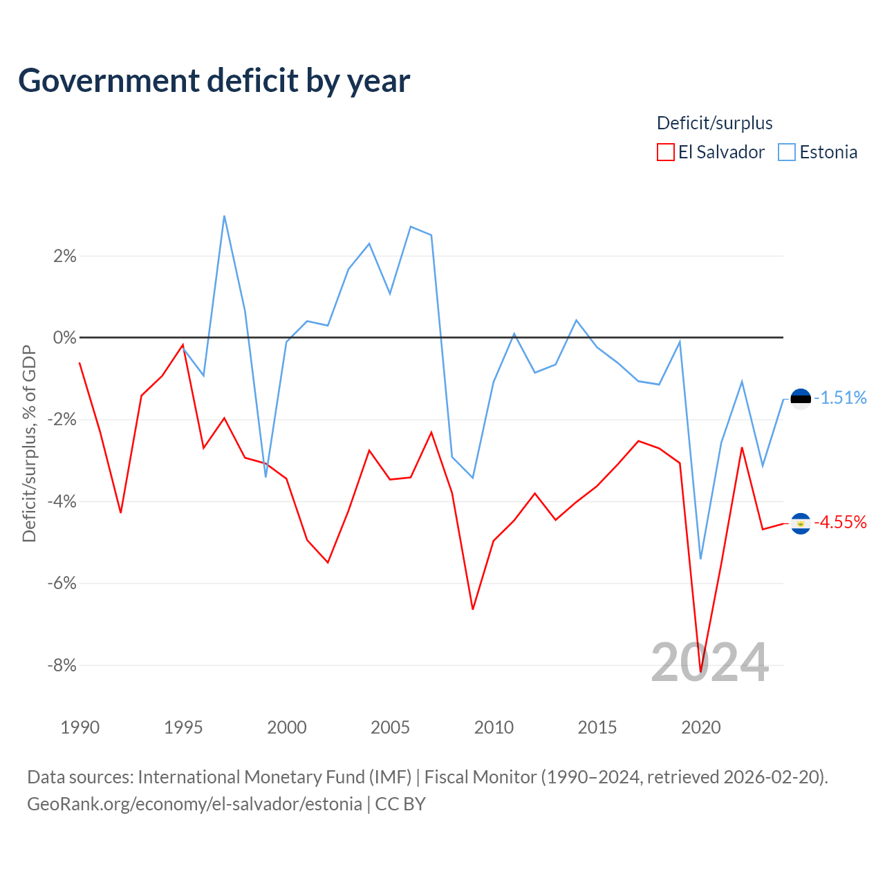 - International Monetary Fund (IMF) | Fiscal Monitor (1990–2024, retrieved 2026-02-20)