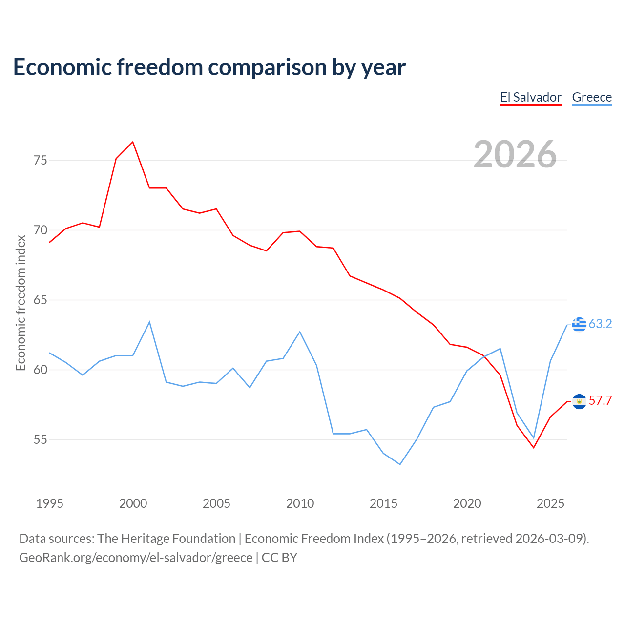 Data sources: The Heritage Foundation | Economic Freedom Index (1995–2026, retrieved 2026-03-09).