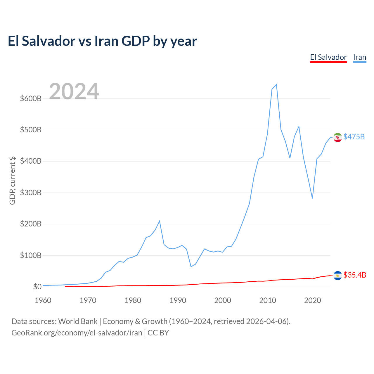 El Salvador vs Iran GDP by year