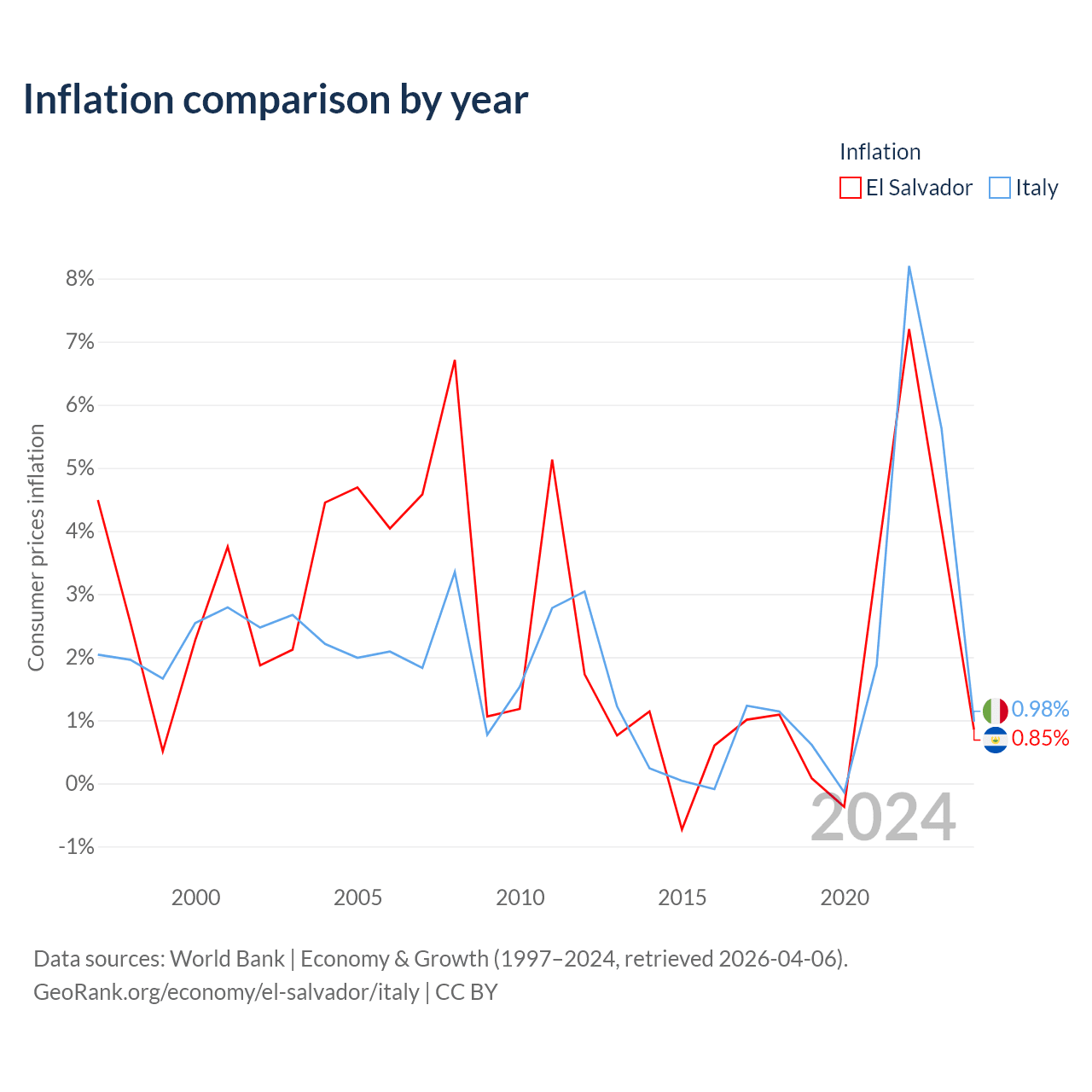 El Salvador vs Italy GDP by year