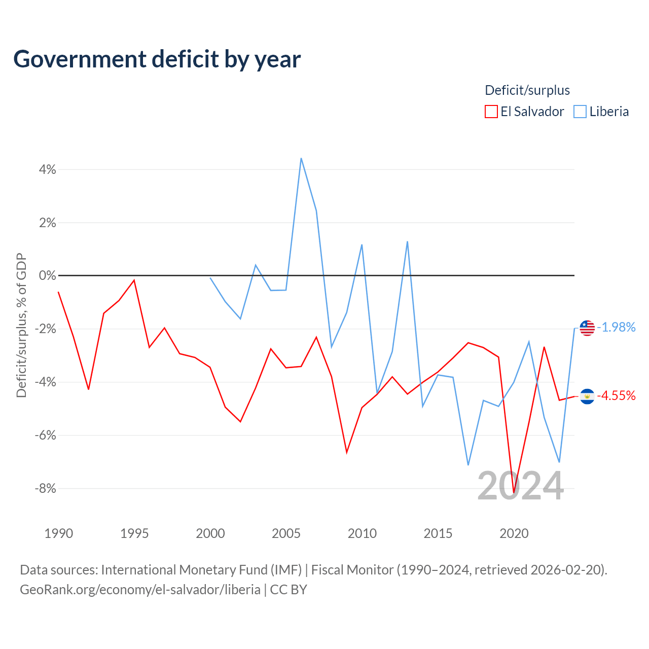 - International Monetary Fund (IMF) | Fiscal Monitor (1990–2024, retrieved 2026-02-20)