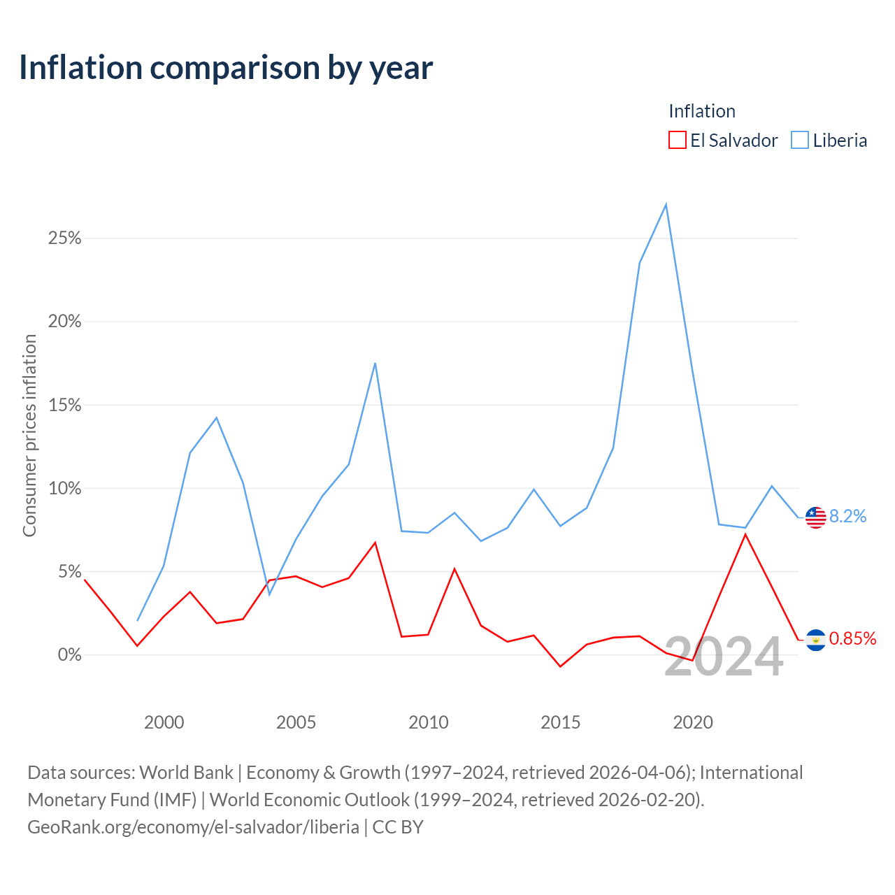 El Salvador vs Liberia GDP by year