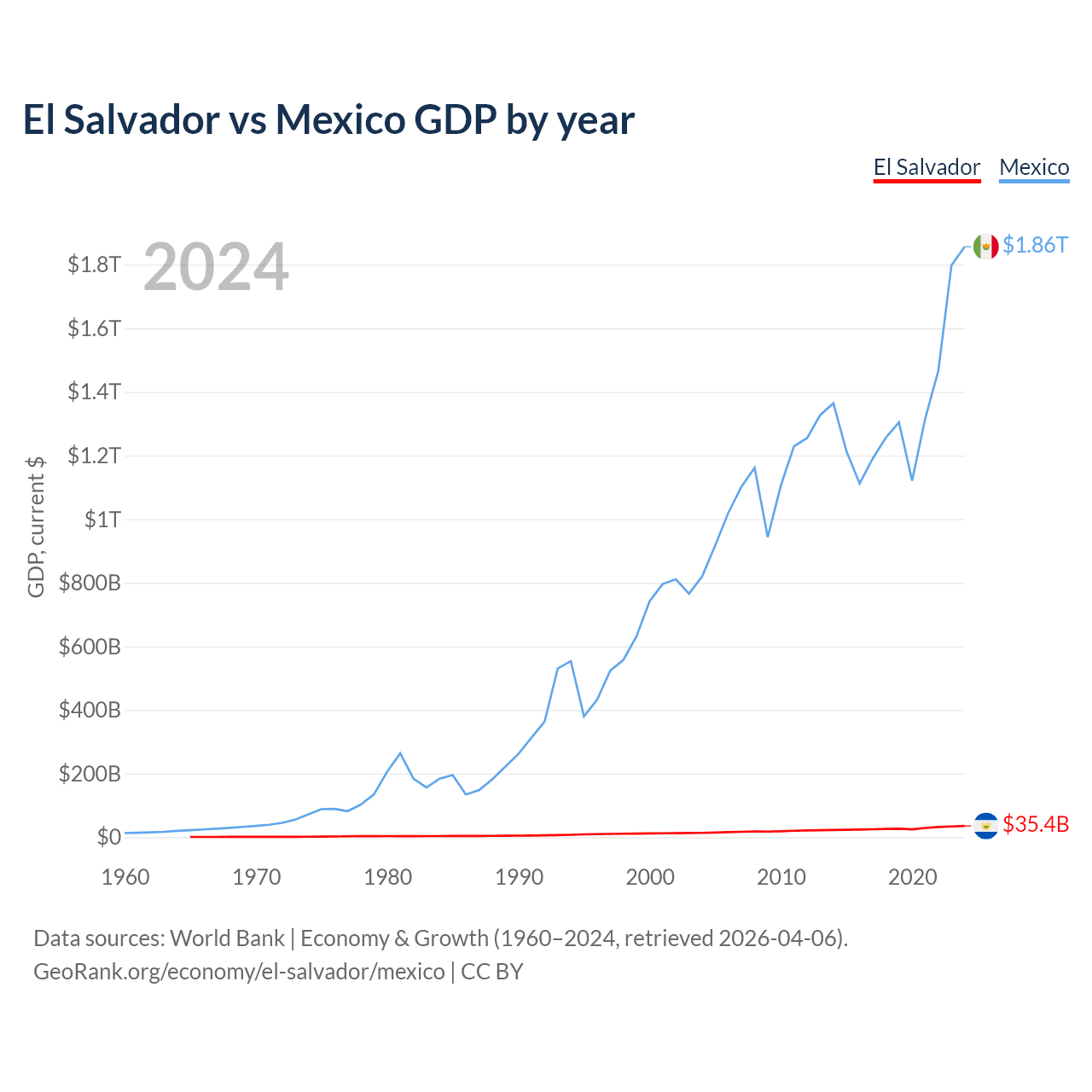 El Salvador vs Mexico GDP by year