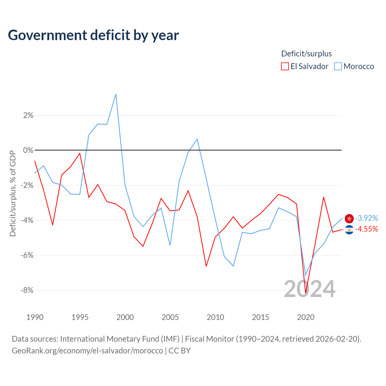 - International Monetary Fund (IMF) | Fiscal Monitor (1990–2024, retrieved 2026-02-20)