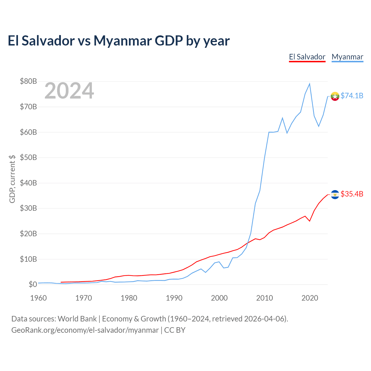 Data sources: World Bank | Economy & Growth (1960–2024, retrieved 2026-04-06).