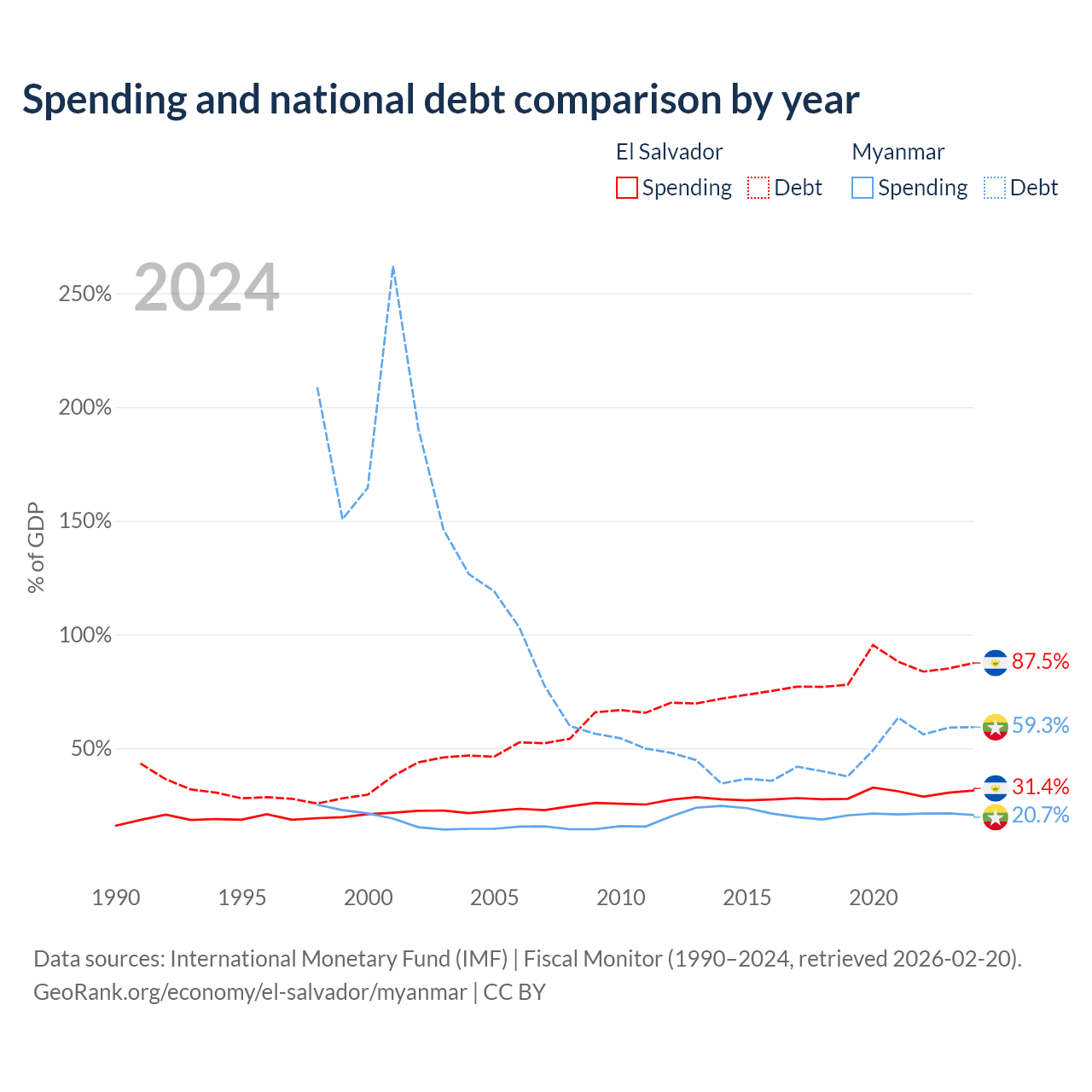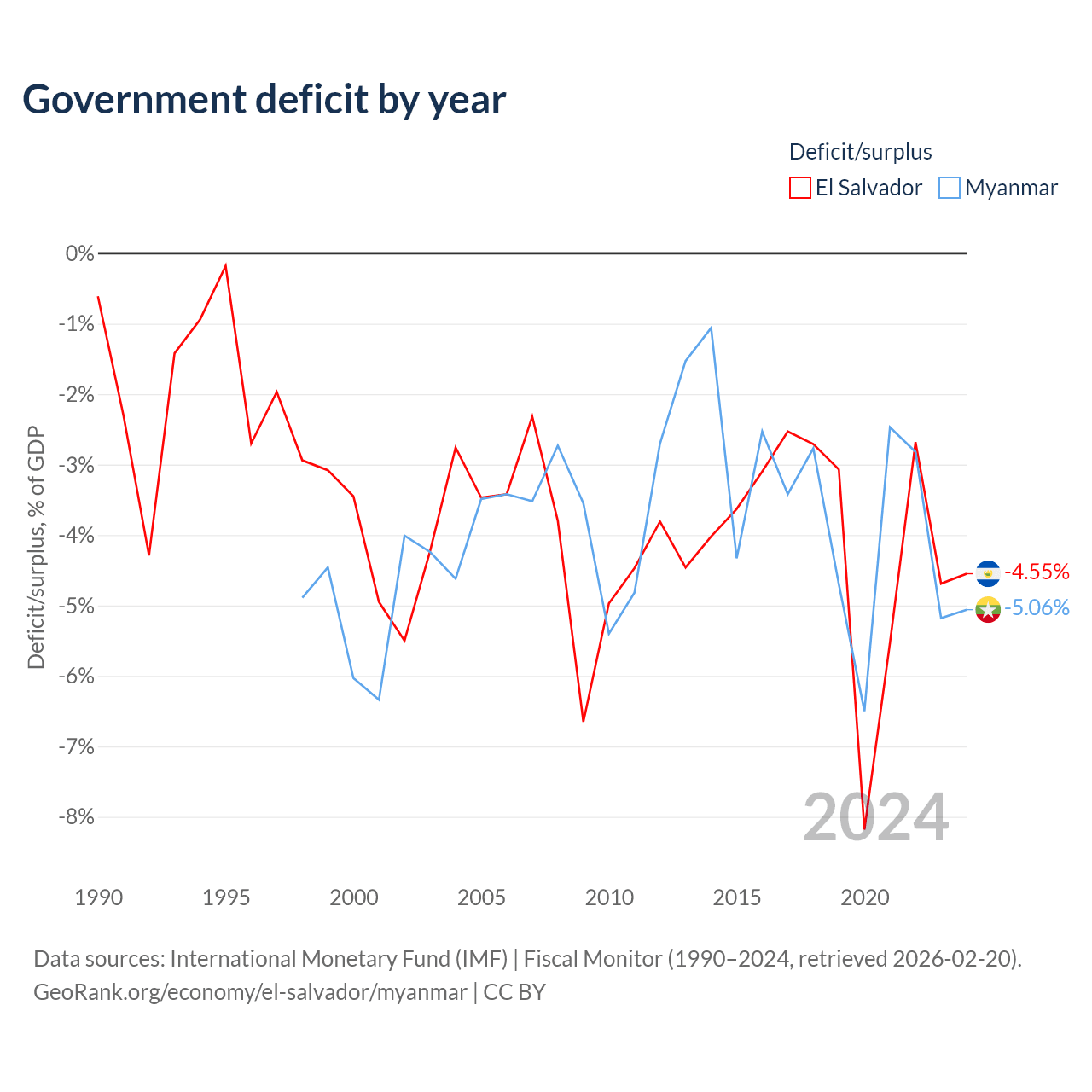 - International Monetary Fund (IMF) | Fiscal Monitor (1990–2024, retrieved 2026-02-20)