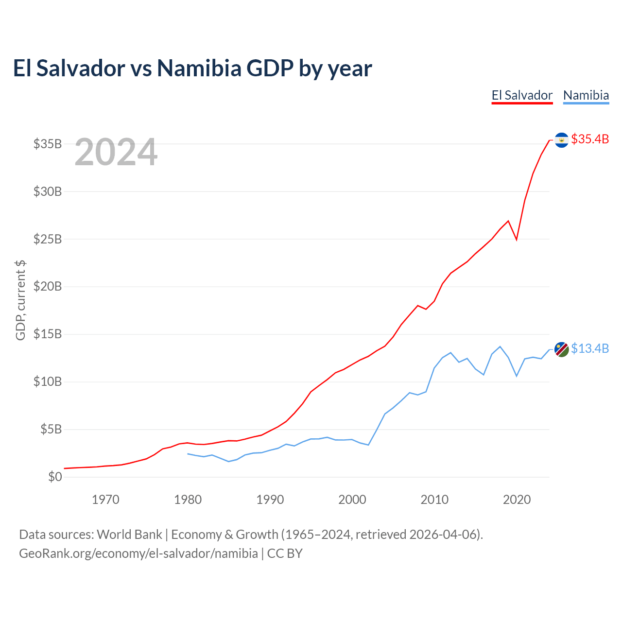 El Salvador vs Namibia GDP by year