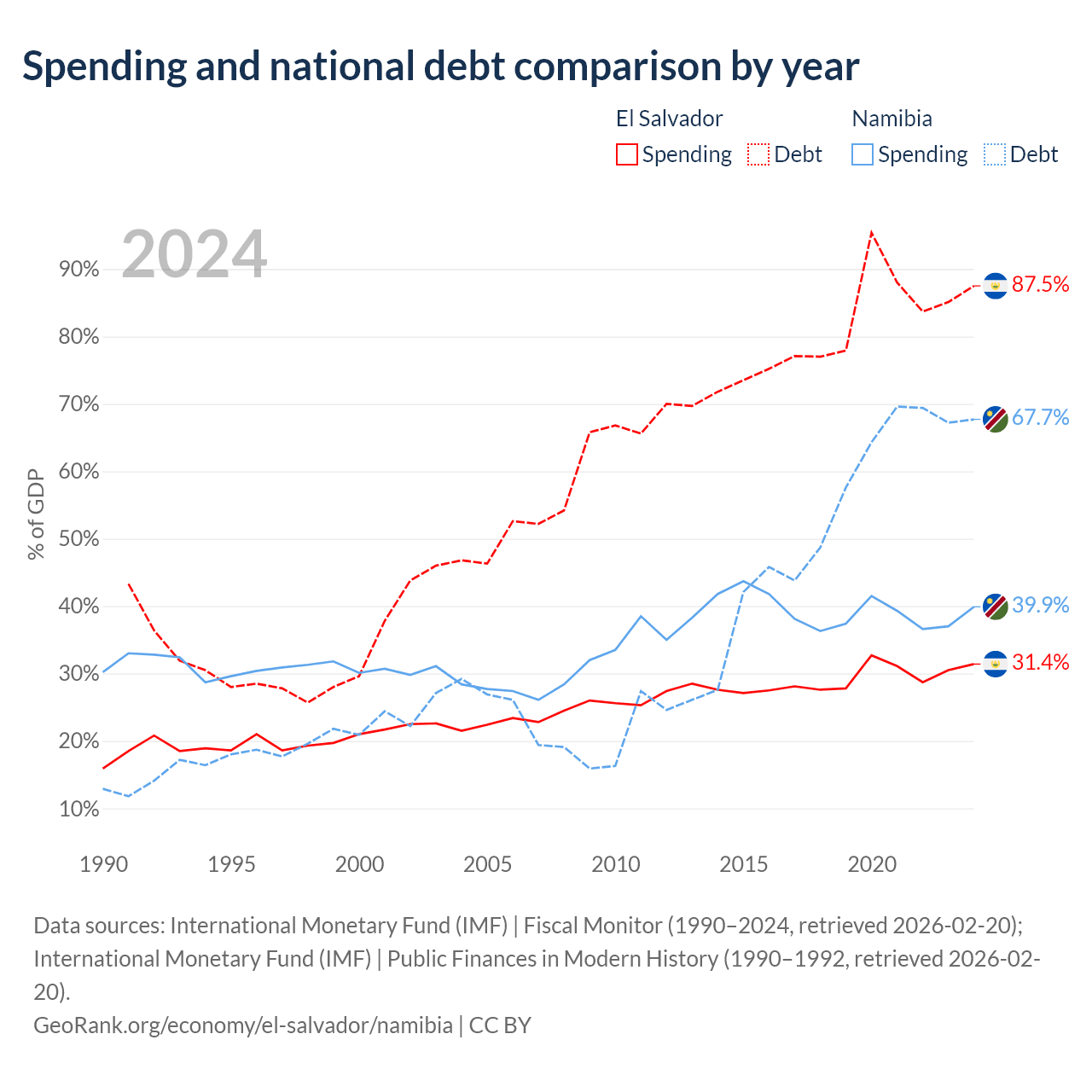 - International Monetary Fund (IMF) | Fiscal Monitor (1990–2024, retrieved 2026-02-20)