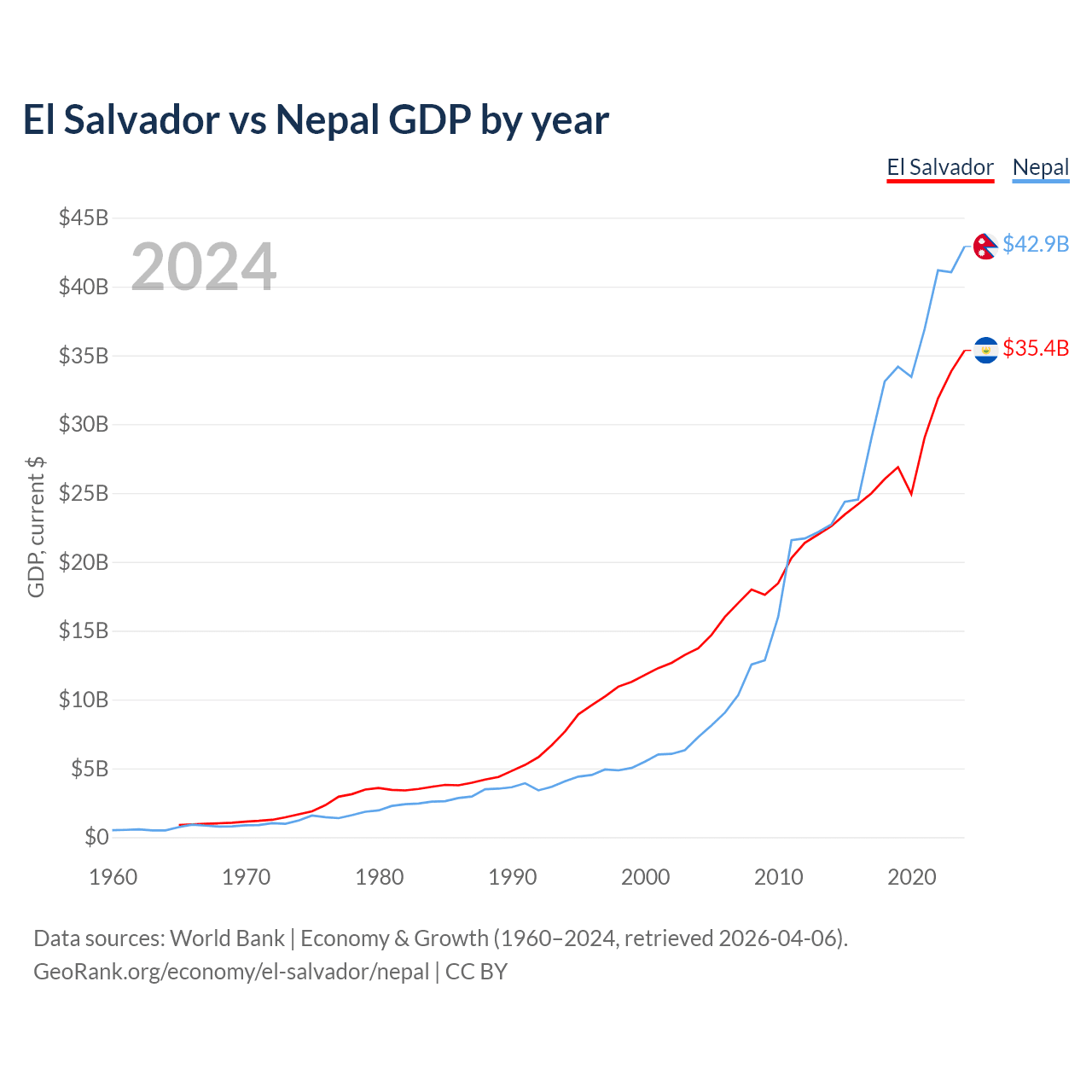 El Salvador vs Nepal GDP by year