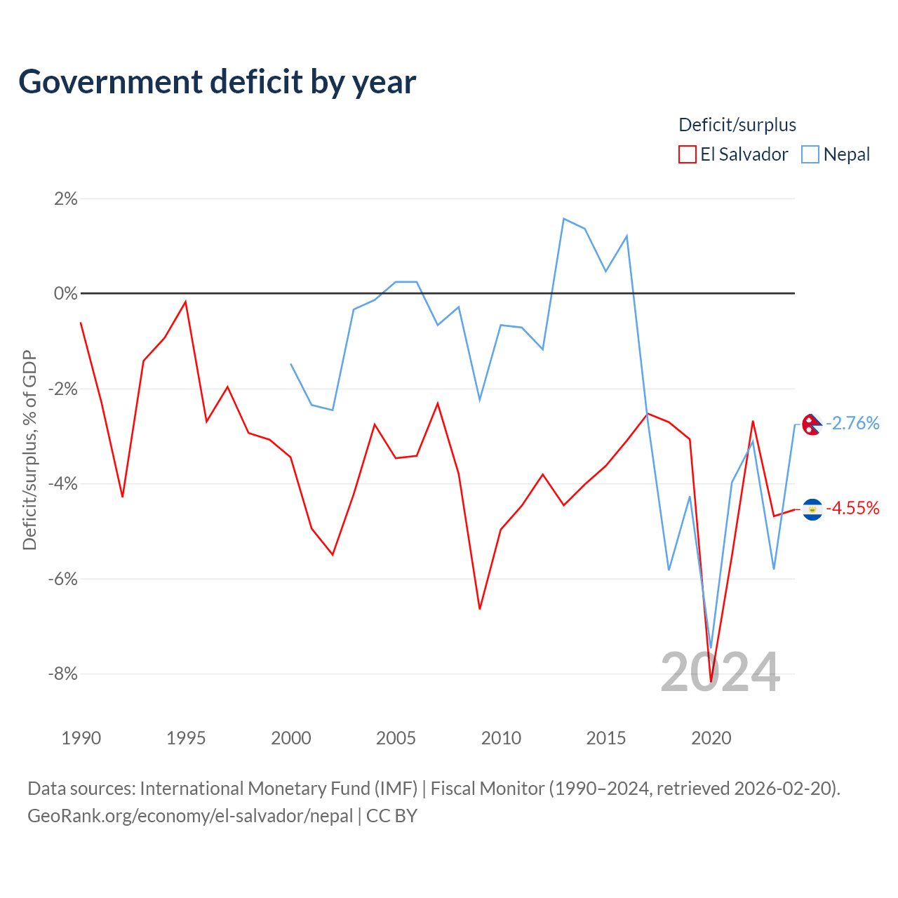 - International Monetary Fund (IMF) | Fiscal Monitor (1990–2024, retrieved 2026-02-20)