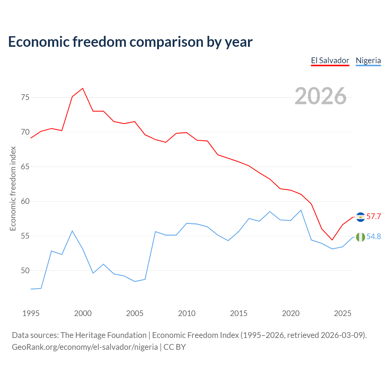 Data sources: The Heritage Foundation | Economic Freedom Index (1995–2026, retrieved 2026-03-09).
